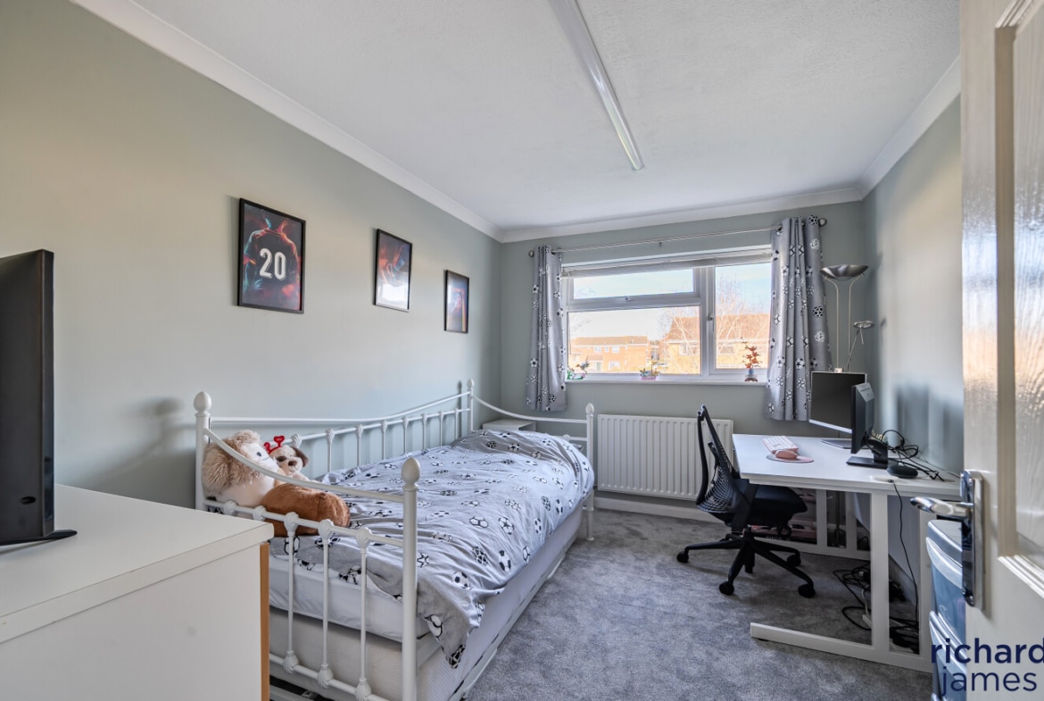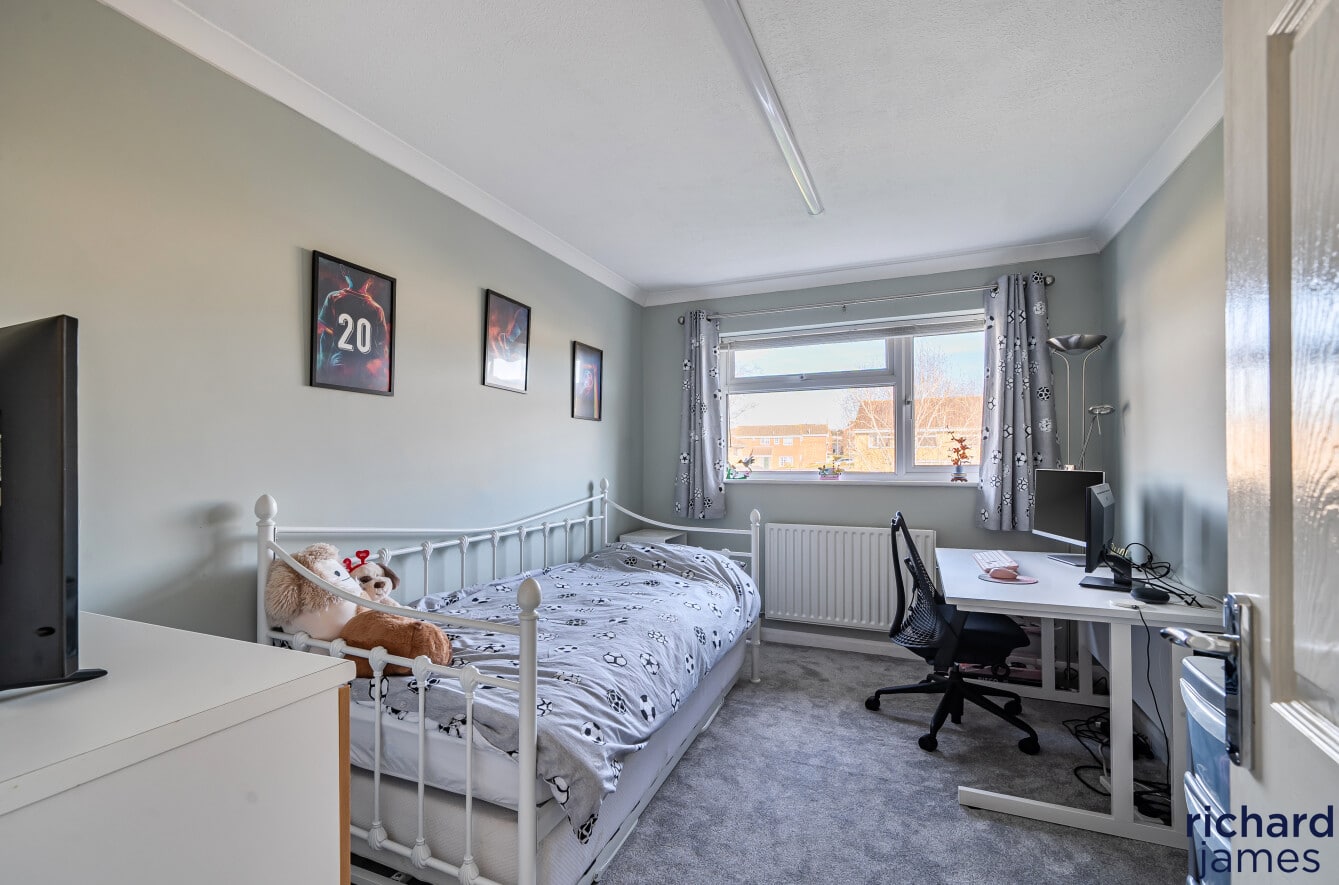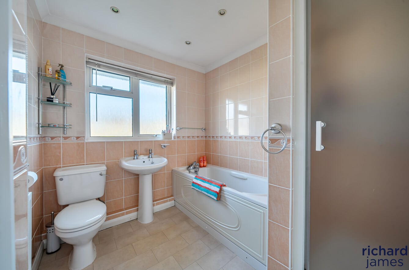 The first floor accommodates four substantial double bedrooms, three of which are furnished with fitted wardrobes, providing ample storage solutions and uncluttered spaces. The bedrooms are served by an impeccably refitted four-piece family bathroom, featuring modern fixtures and fittings that enhance the home’s contemporary appeal. This thoughtful layout ensures both comfort and functionality for a growing family, further accentuating the property’s desirability.