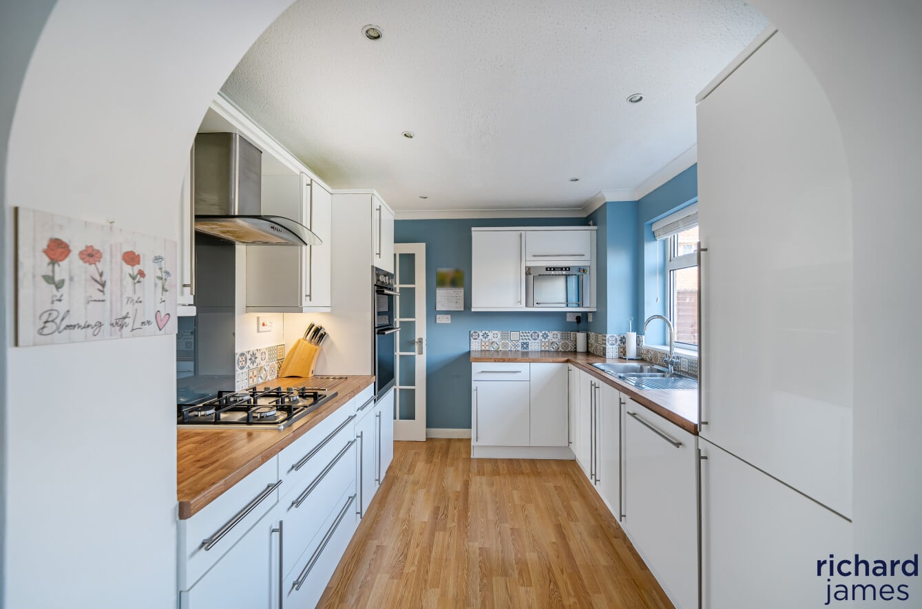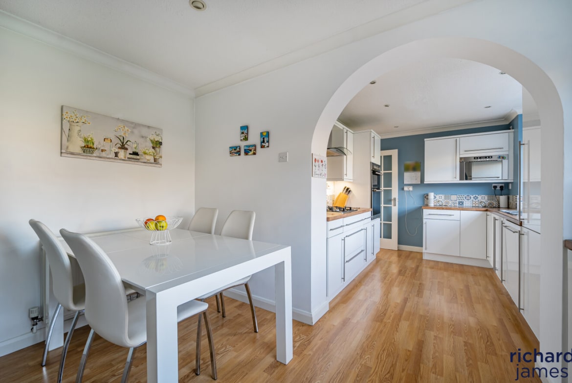 This extended detached house in a quiet cul-de-sac offers spacious and versatile living with four double bedrooms, three featuring fitted wardrobes. Ground-floor benefits include an entrance hall, WC, living room, second reception room, and a kitchen-diner. The property boasts a refurbished four-piece bathroom. Outside, there’s driveway parking, a garage for several vehicles, and an enclosed rear garden. Located in Freshbrook, it offers quick access to local amenities like schools and parks, while West Swindon provides extensive shopping, dining, and entertainment options.