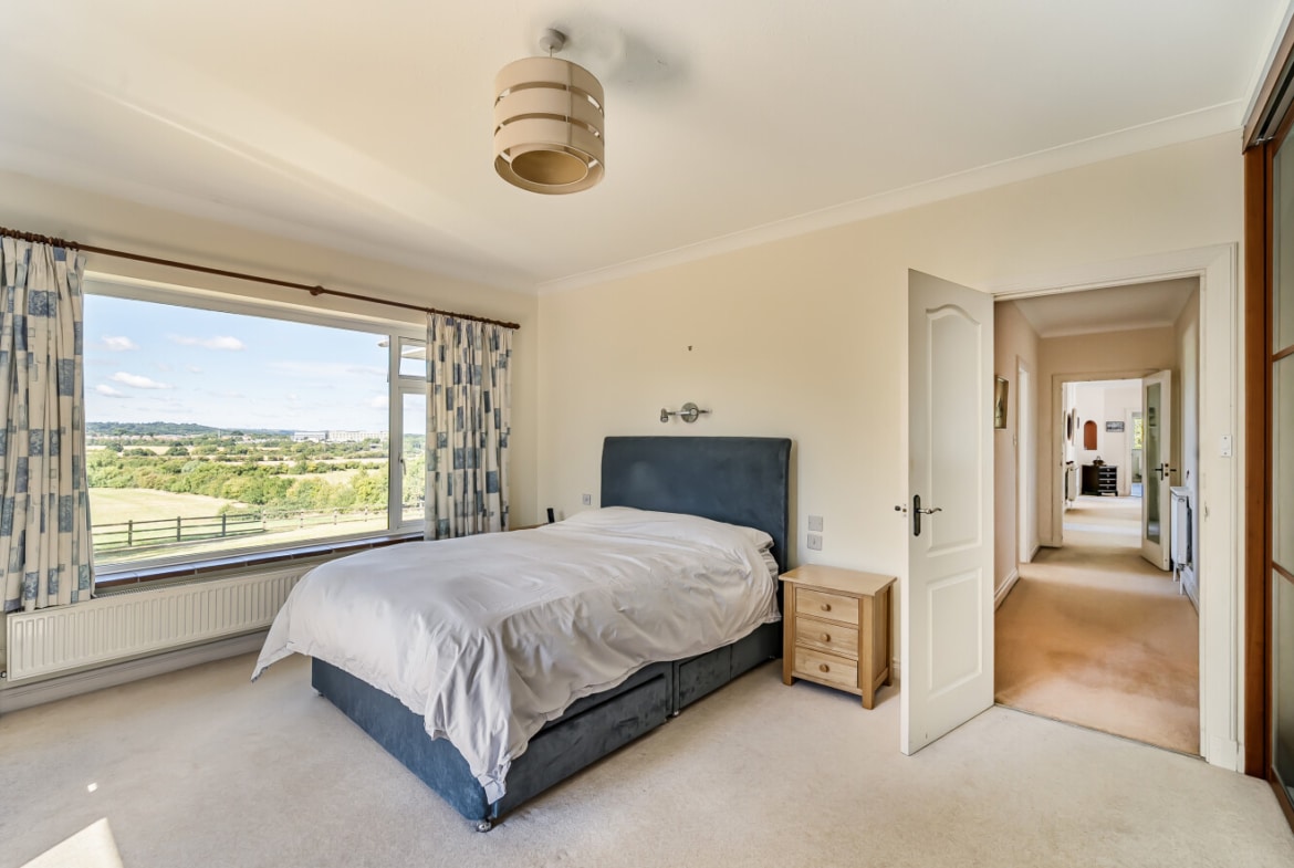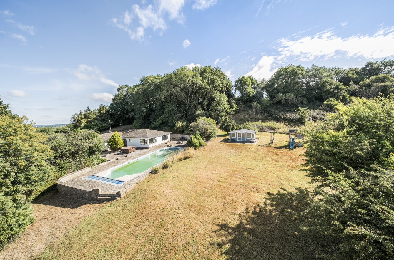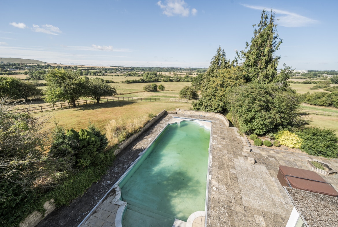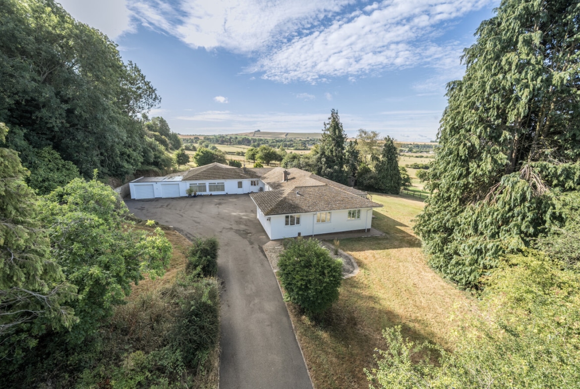 Accessed via a private driveway, the home enjoys complete seclusion and panoramic views across Liddington Hill and the surrounding Wiltshire countryside.