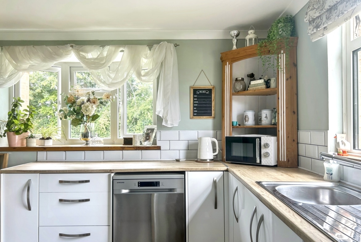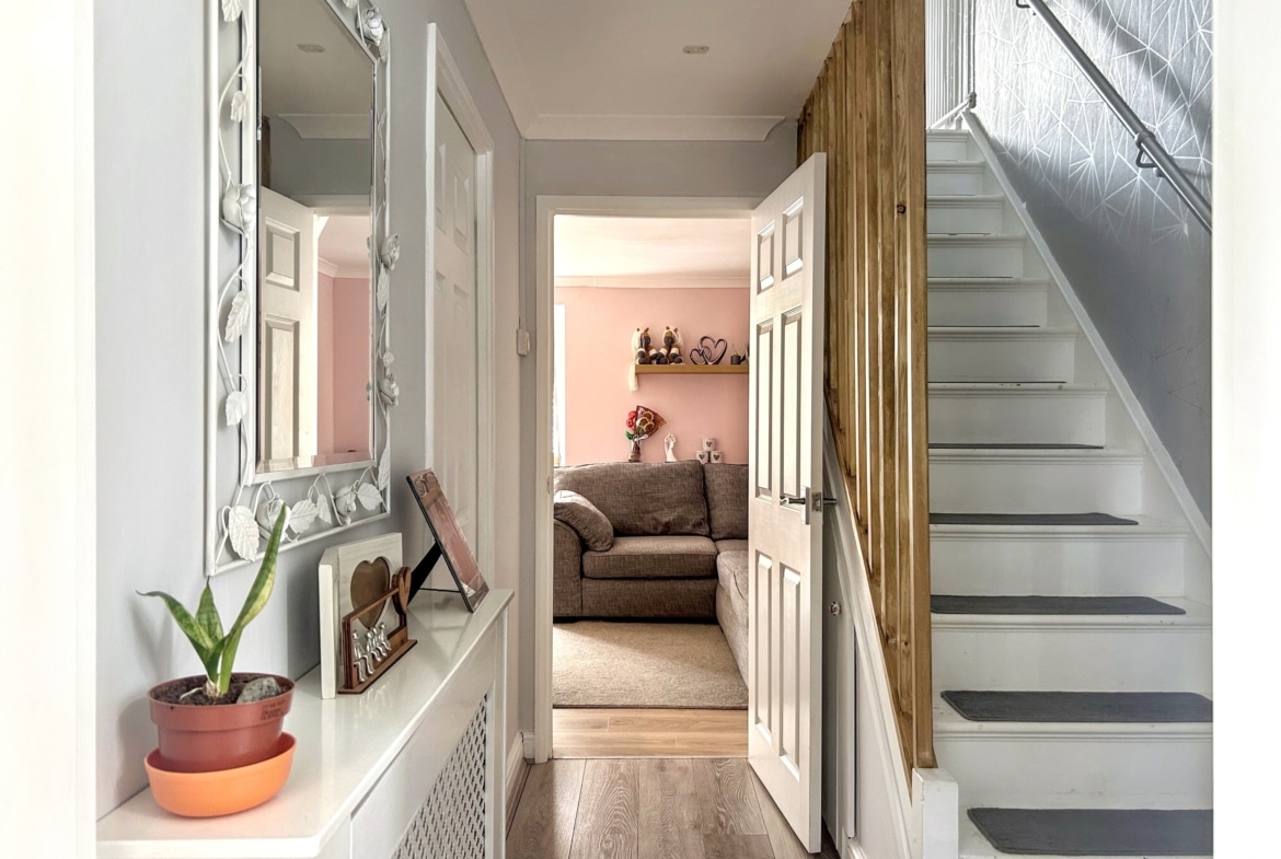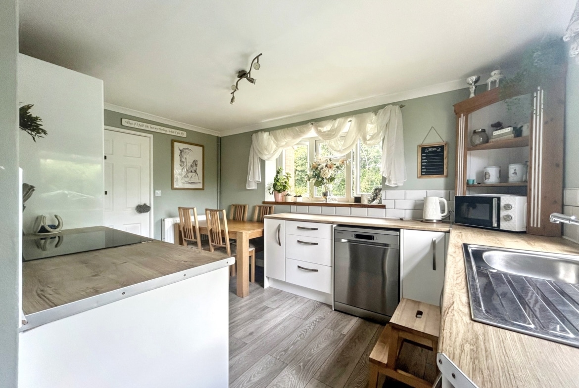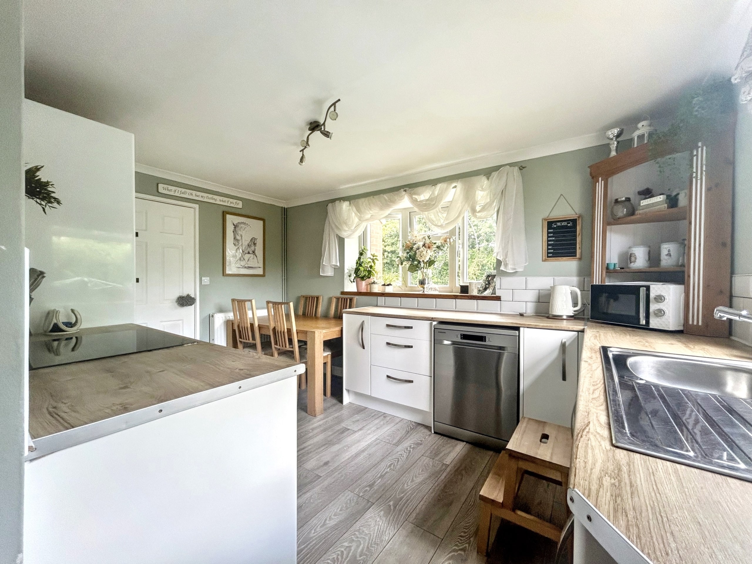 Internally, the home is decorated in a natural palette throughout, creating a light and welcoming atmosphere. The ground floor comprises a spacious kitchen/diner with modern fittings, a separate utility room, and a comfortable living room featuring an open (non-operational) fireplace. The adjoining conservatory, recently upgraded with a new roof, offers year-round use and overlooks the garden — perfect as an additional reception or garden room.