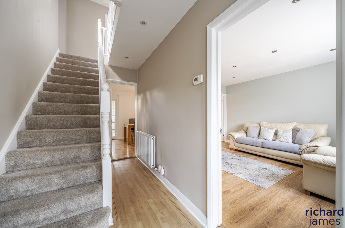 Step into this stunning and deceptively spacious family home, tucked away in a highly desirable cul-de-sac where properties rarely come to market. This charming home is bathed in natural light throughout, featuring an open-plan living space downstairs that effortlessly flows into additional reception rooms, offering endless possibilities to suit your lifestyle.