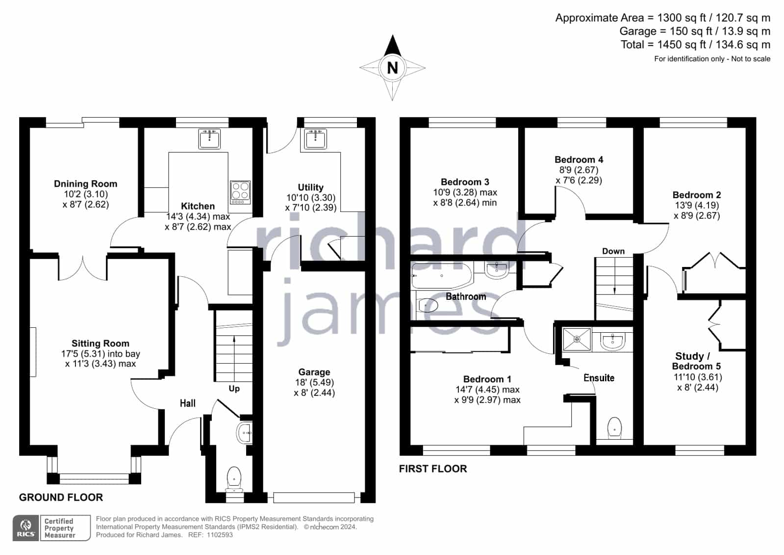The accommodation comprises; Hall, Cloakroom, Sitting Room with bay window, with double doors opening into the Dining Room, with patio doors into the enclosed Rear Garden. As well as a fully fitted Kitchen and equally generous fitted Utility Room. To the first floor, Bedroom One has built-in wardrobes and Ensuite Shower Room, there are Three further Bedrooms, plus Study/Bedroom Five, along with a Family Bathroom, with white three piece suite.