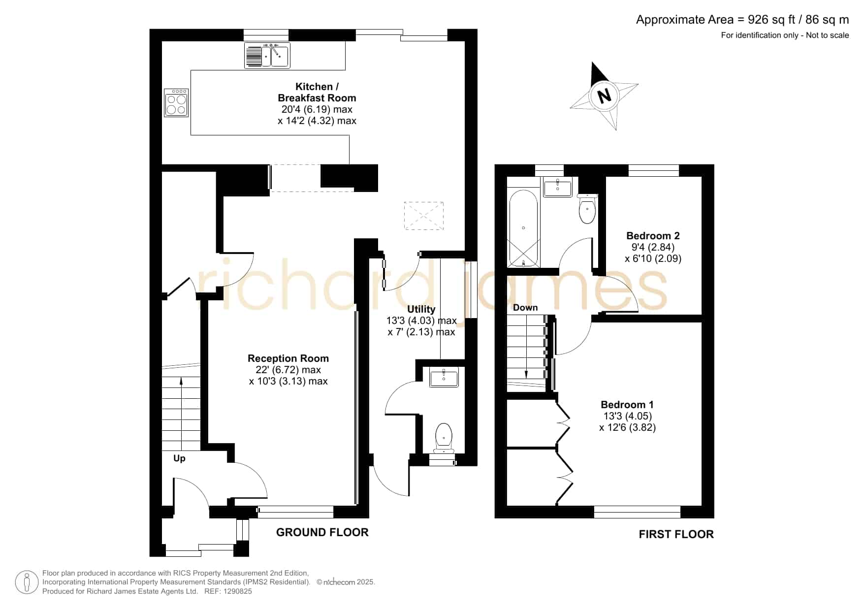 Upstairs, you’ll find two generously sized bedrooms, particularly the impressive master, along with a well-kept family bathroom.