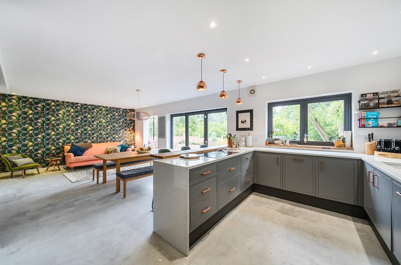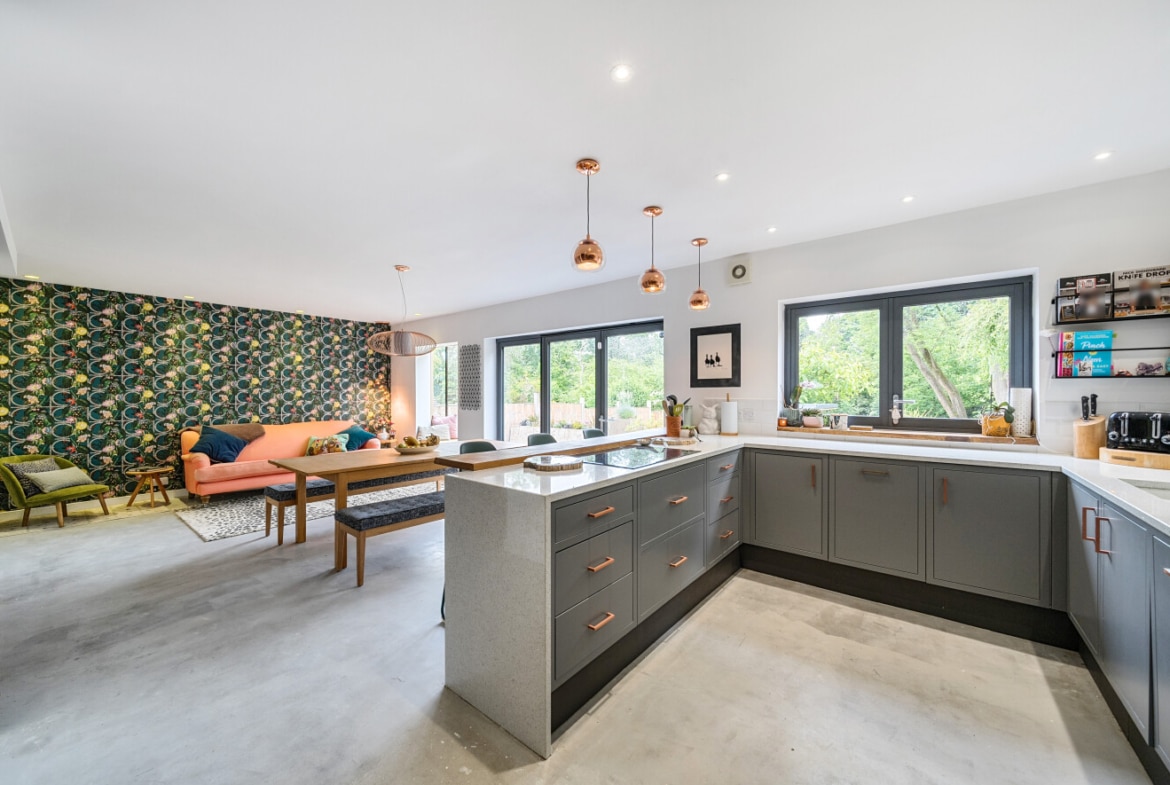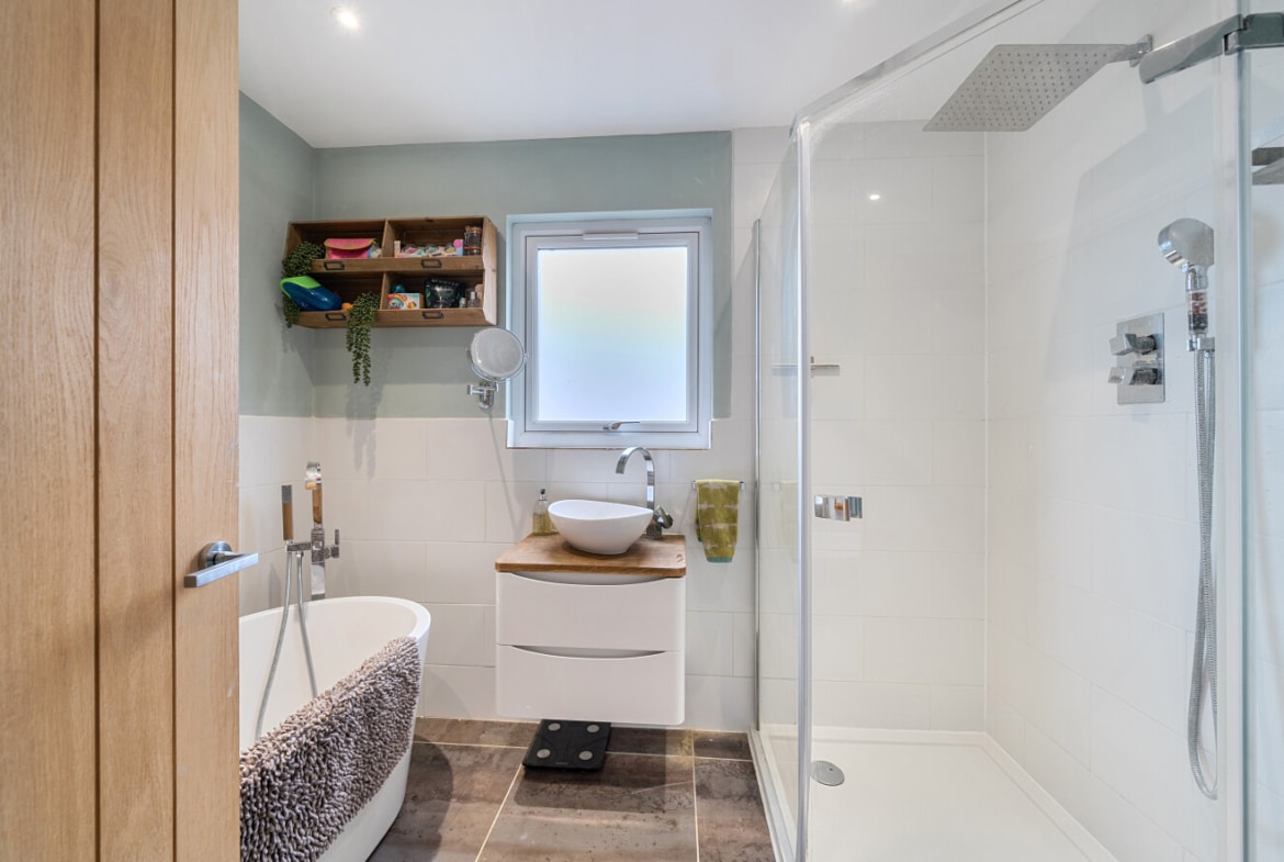 The accommodation has been designed to cater for the needs of a modern family, with an open plan feel and comprises; Spacious Hall with generous storage cupboards, Reception Hall, which opens to the cosy Sitting Room and the fantastic 28′ Kitchen/Dining/Family Room, which includes an extensively refitted Kitchen, with peninsular worktop, underfloor heating and picture window with slide & stack patio doors opening into the Rear Garden. There is also a separate refitted Utility Room, refitted Shower Room and Study/Bedroom Five, which completes the ground floor. To the first floor, you’ll find the Four spacious Bedrooms, including the superb Master Suite with picture window overlooking the Rear Garden, Walk-in-wardrobe and refitted Ensuite Shower Room, as well as a refitted four piece Family Bathroom.