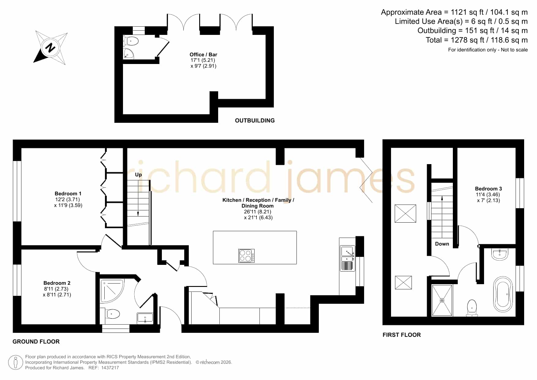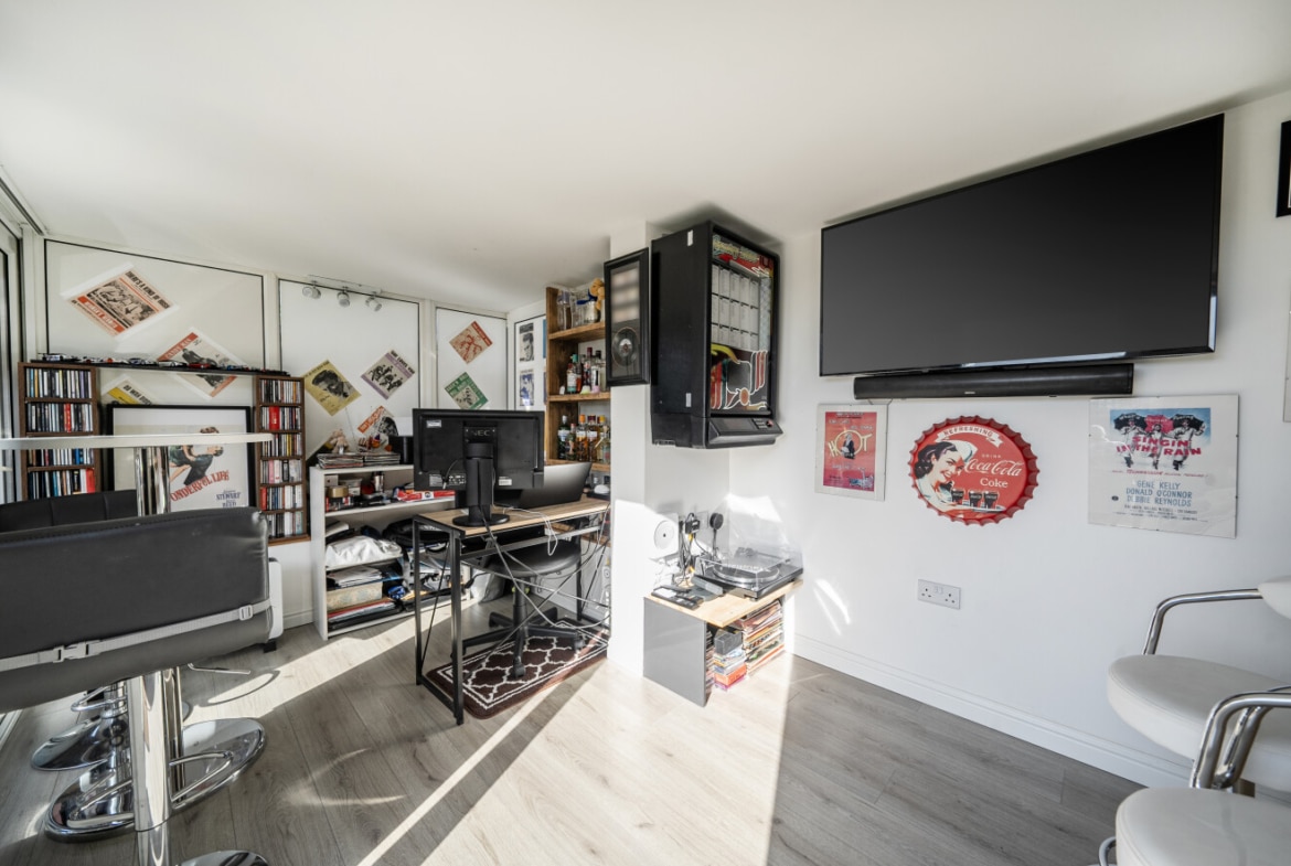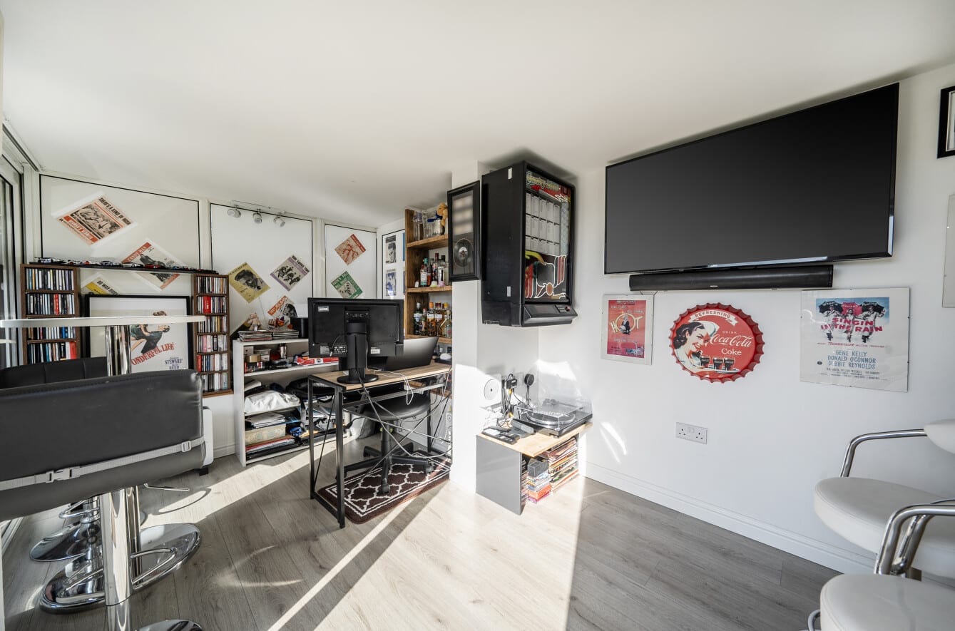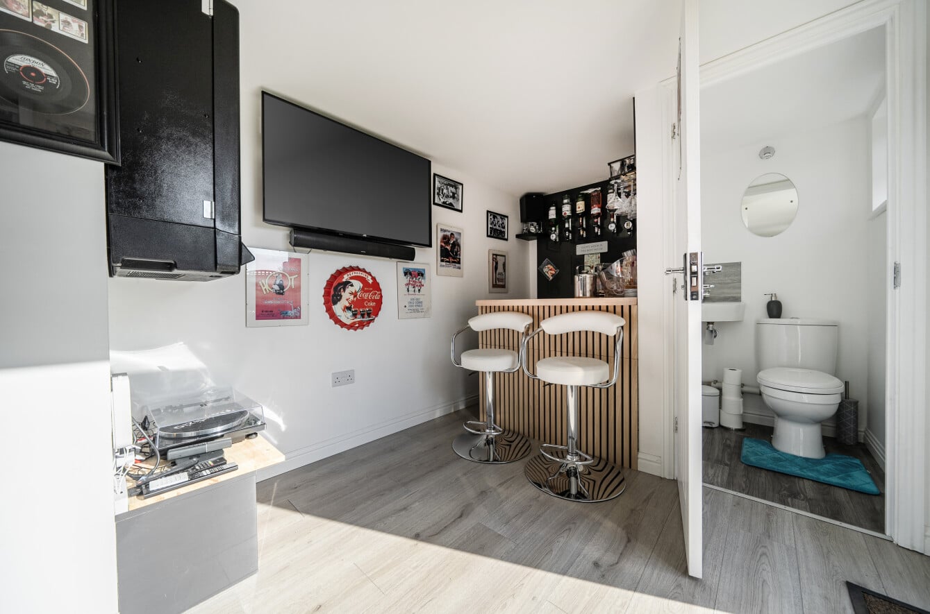 An additional outbuilding offers excellent versatility, currently arranged as a home office/bar space with its own facilities, making it ideal for remote working, hobbies, or entertaining.