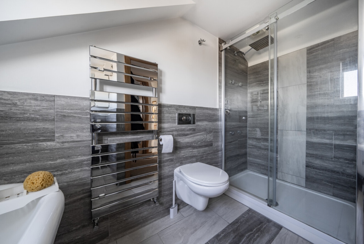 The ground floor also provides two well-proportioned bedrooms, ideal for family living, guests, or flexible home working, along with a modern family bathroom finished with clean, contemporary styling.