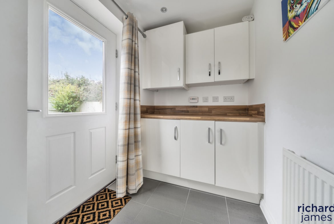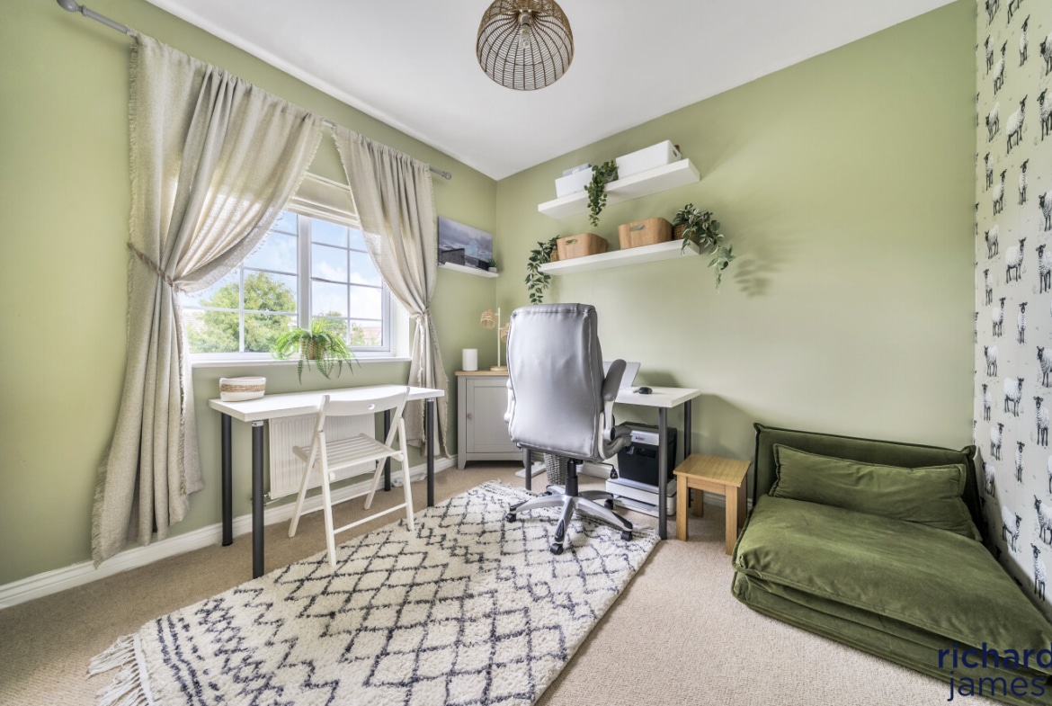 Externally, the property is equally appealing. To the front, the home faces a pleasant green area, enhancing the sense of space and outlook. The driveway provides parking for several vehicles and leads to a single garage, offering both secure storage and additional parking if desired. The rear garden is fully enclosed and enjoys a high degree of privacy. Thoughtfully landscaped and easily maintained, it provides the perfect backdrop for outdoor dining, children’s play or simply relaxing in a peaceful setting.