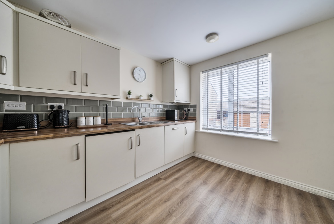 Upon entry you are greeted by a welcoming entrance hall boasting herringbone flooring. On your right you will locate the kitchen which provides ample surface and cupboard space along with room for a dining table. The lounge can be found at the rear of the downstairs space with patio doors leading to the garden. The w/c is positioned between these two rooms.