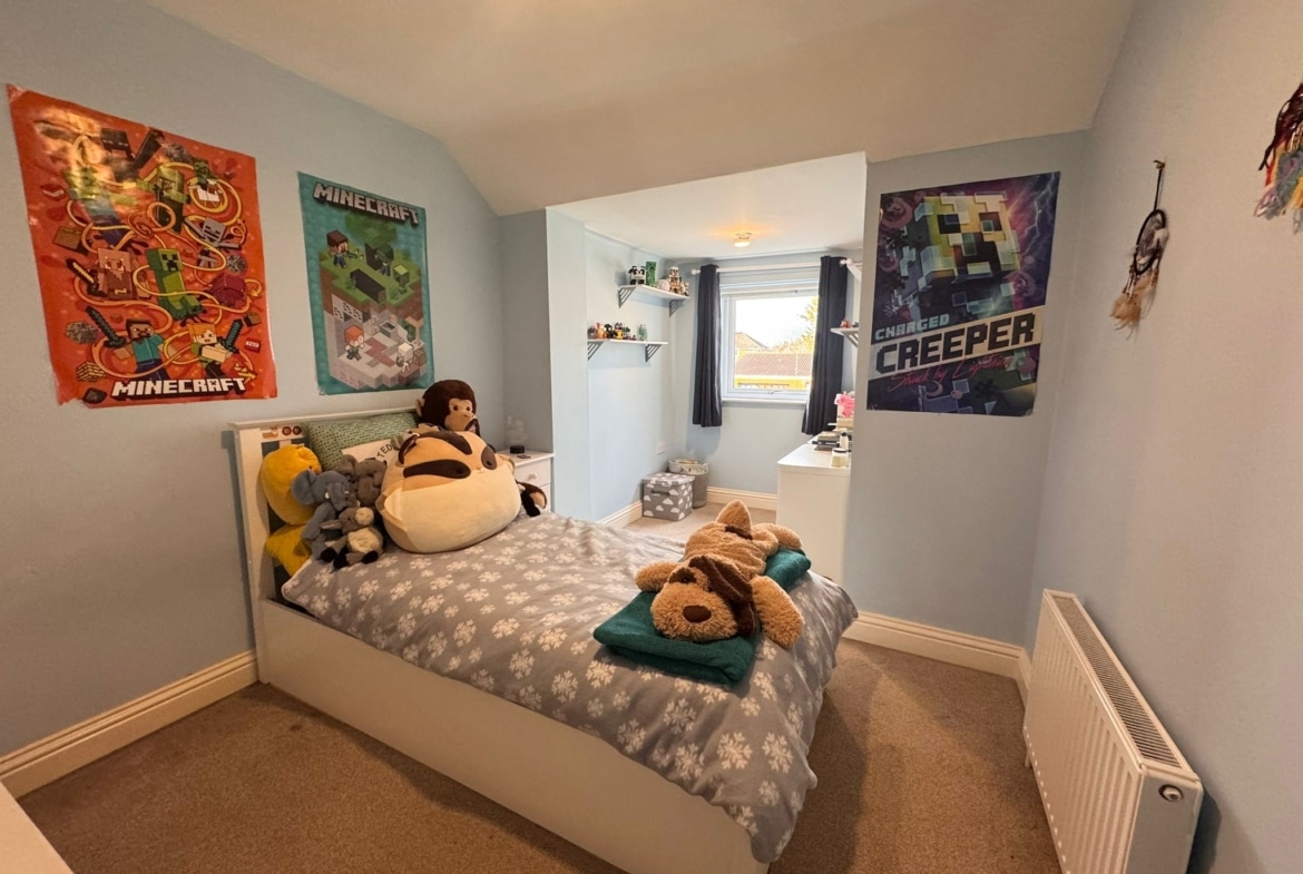 The converted garage offers versatility and can be used as a home office or playroom. Upstairs, there are four bedrooms, including three doubles and a single, alongside a stylish family bathroom. The main bedroom is a true retreat, featuring a private ensuite and Juliet balcony overlooking the garden.
