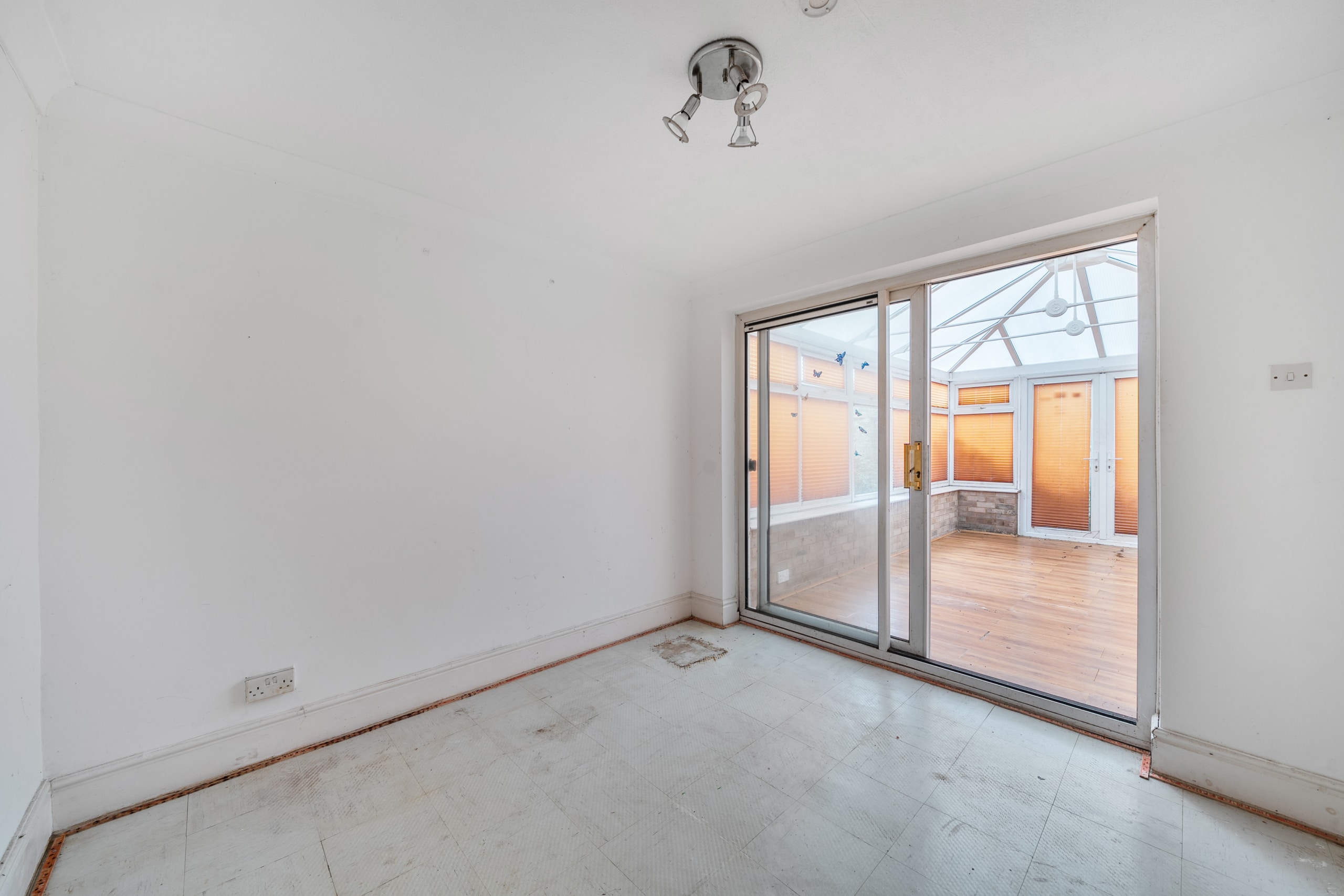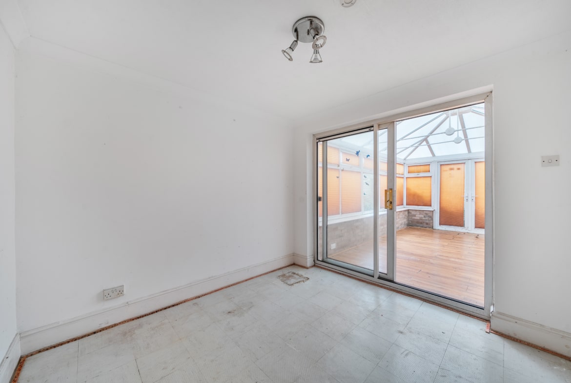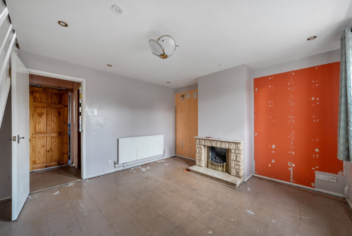 Outside, the property features a large garage to the side, along with a driveway to the front providing ample off-road parking. The rear garden is of good size, though currently very overgrown and in need of attention, perfect for those keen to landscape and design an outdoor space to their own taste.