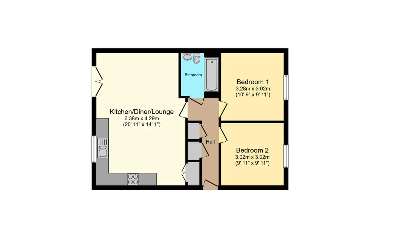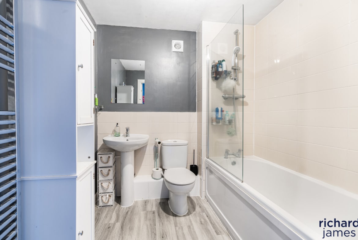 With two generous bedrooms, and lots of fitted cupboards there’s ample storage space and room for customization. The family bathroom with a shower over the bath adds convenience and versatility to the space.