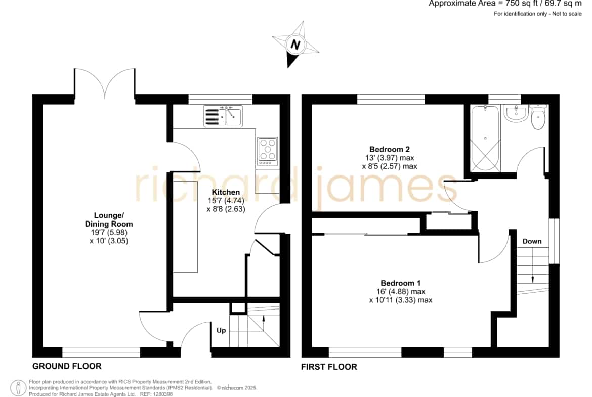 Upstairs, the property offers two generous double bedrooms, including a spacious master with built-in wardrobes, and a stylish, contemporary family bathroom.