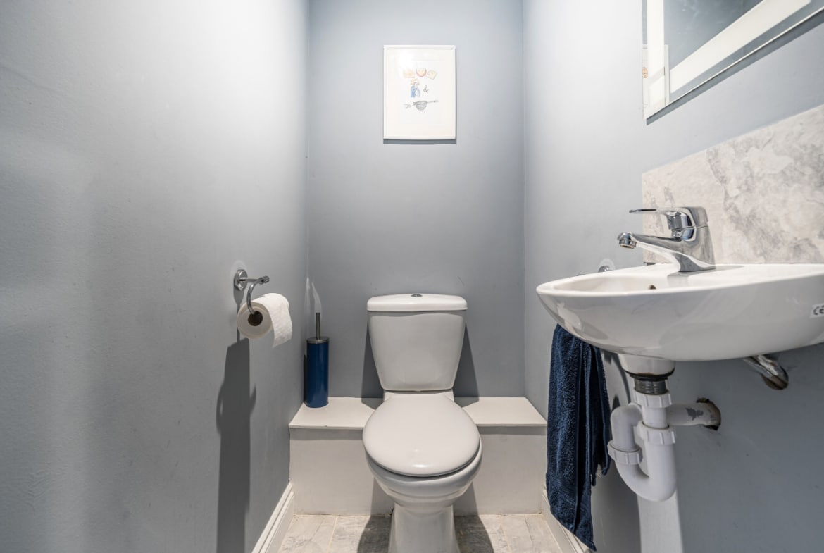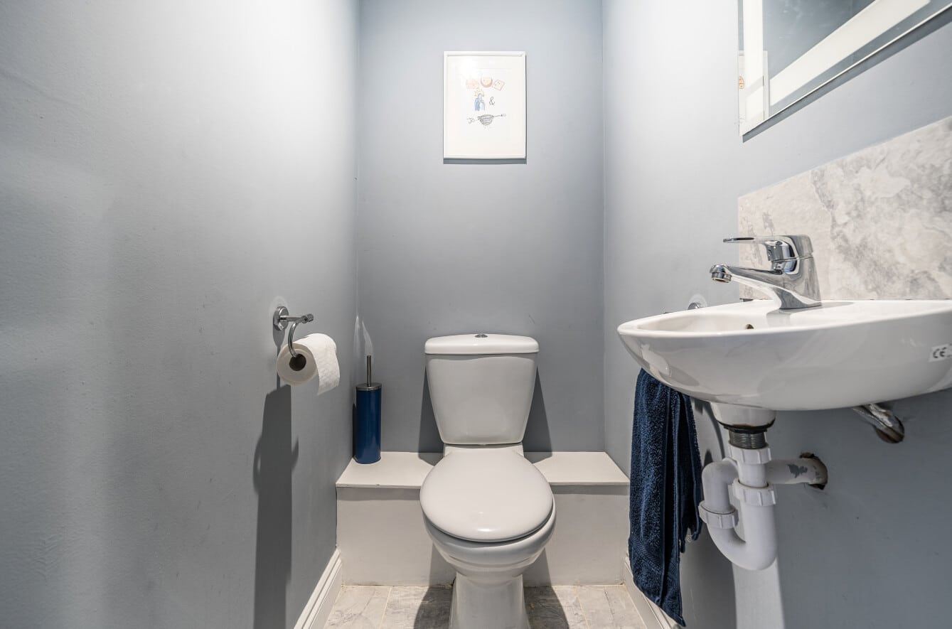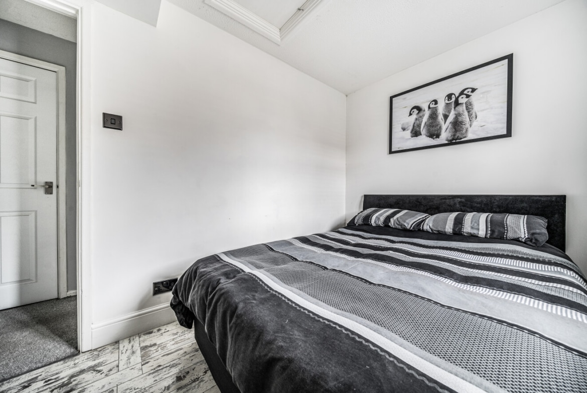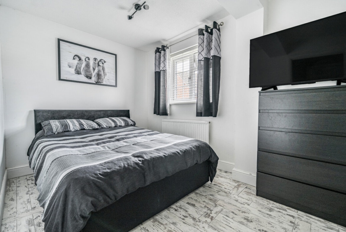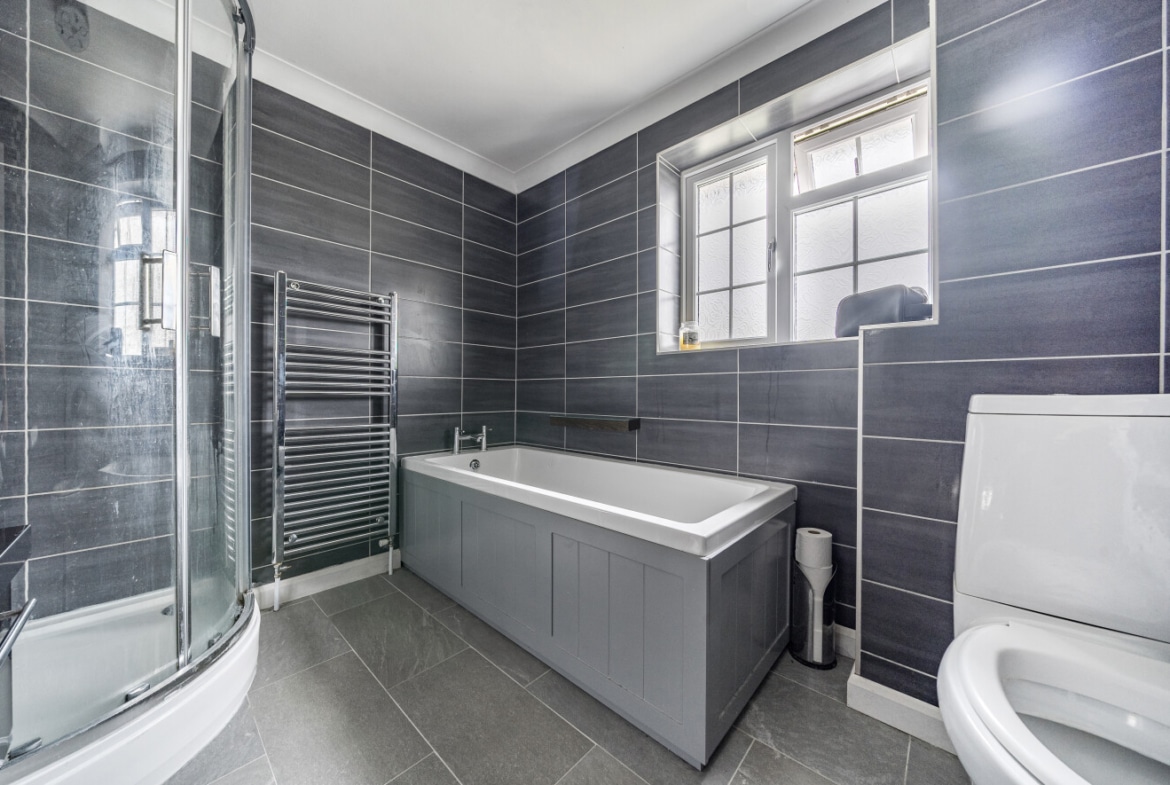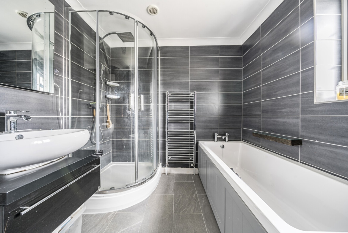 Upstairs, you’ll find three generously sized bedrooms, with the main bedroom benefiting from built-in wardrobes. There’s no box room here — all bedrooms offer comfortable proportions and flexibility. The family bathroom is stylish and modern, featuring a contemporary four-piece suite, including a separate shower and bath.