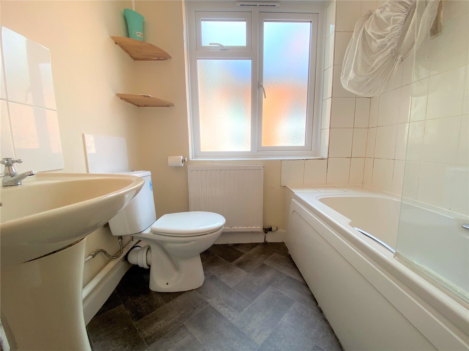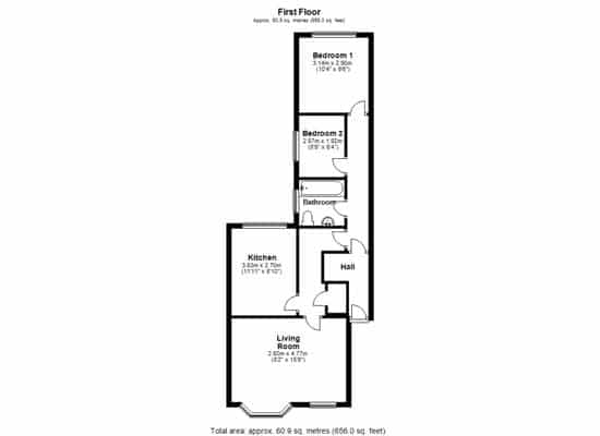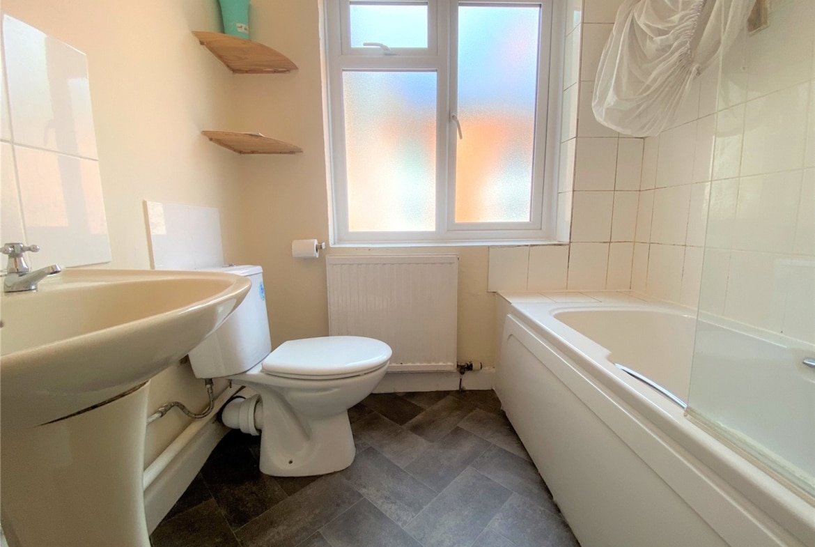 A well presented FIRST FLOOR apartment located in this central location. Comprising; Entrance Hallway, Kitchen with white goods, large Living Room with bay window feature, two good sized Bedrooms and a family Bathroom with shower over bath. Externally benefitting from an allocated Parking Space.