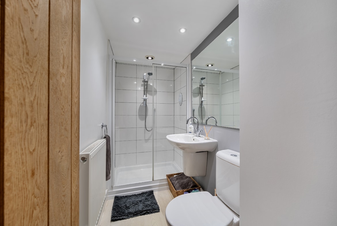 Upstairs, you’ll find four good-sized bedrooms, all with ample natural light, and a modern family shower room. The main bedroom benefits from built-in storage, adding practicality and convenience.