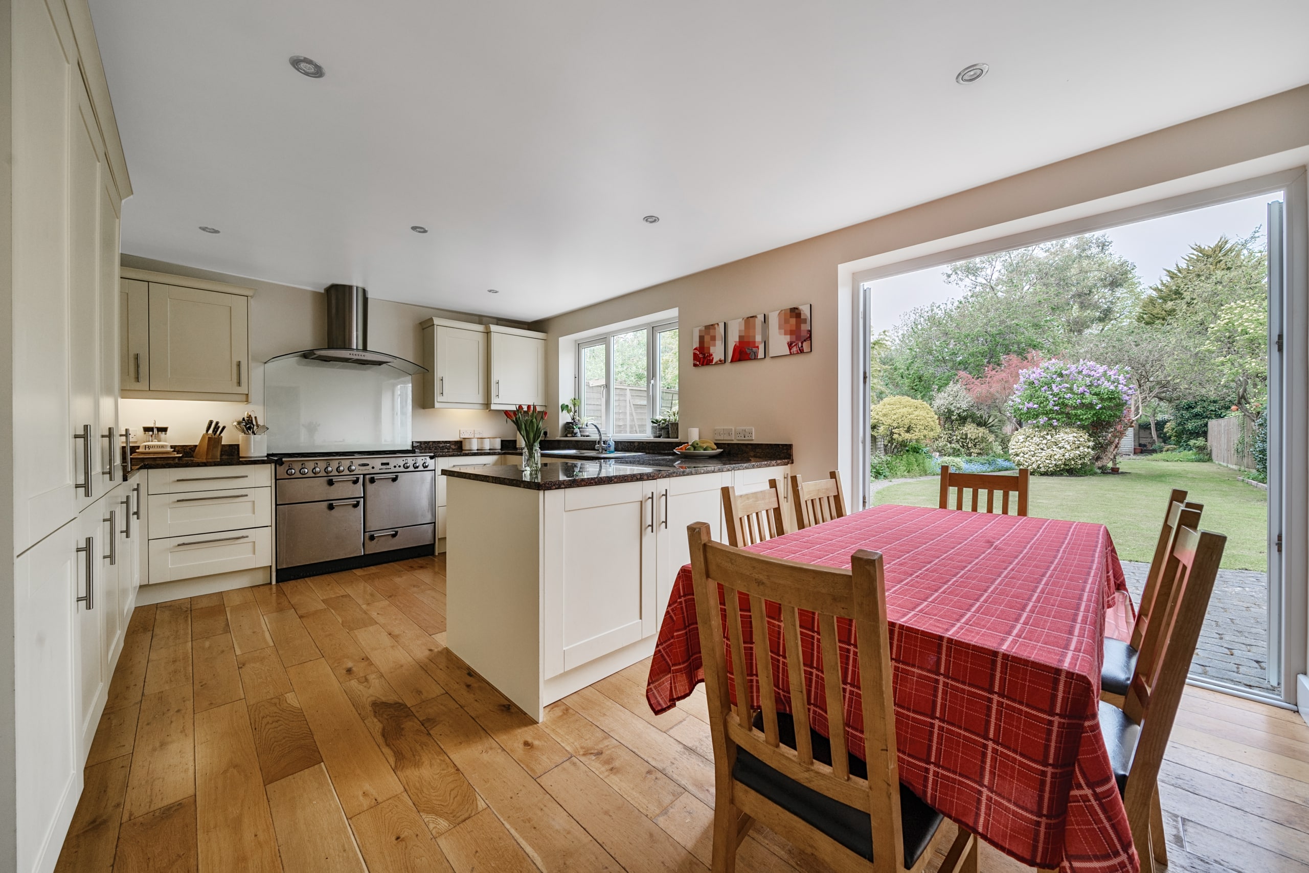 A charming music room/reading room sits off the hallway, providing a peaceful retreat. The stunning kitchen/diner is a highlight of the home, featuring integrated appliances, a range cooker, and French doors that open directly onto the garden, creating a bright and airy space. An additional reception room off the kitchen provides flexibility—ideal for use as a study, home office, or potential fifth bedroom.