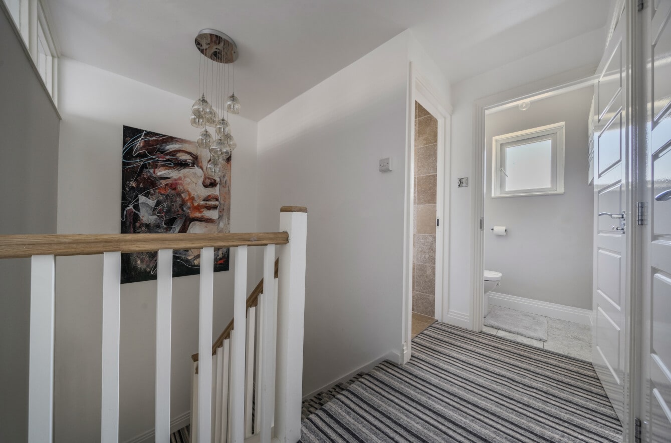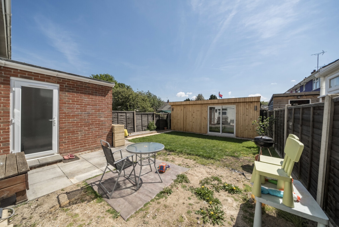Upstairs offers three well-proportioned bedrooms and a stylish family bathroom. Outside, the property continues to impress with a private rear garden and a standout feature: a charming summer house. Split into two sections, one side provides practical storage space, while the other—accessed through beautiful double doors—is currently used as a children’s playroom. This versatile space could just as easily serve as a home office, hobby room, or peaceful retreat.