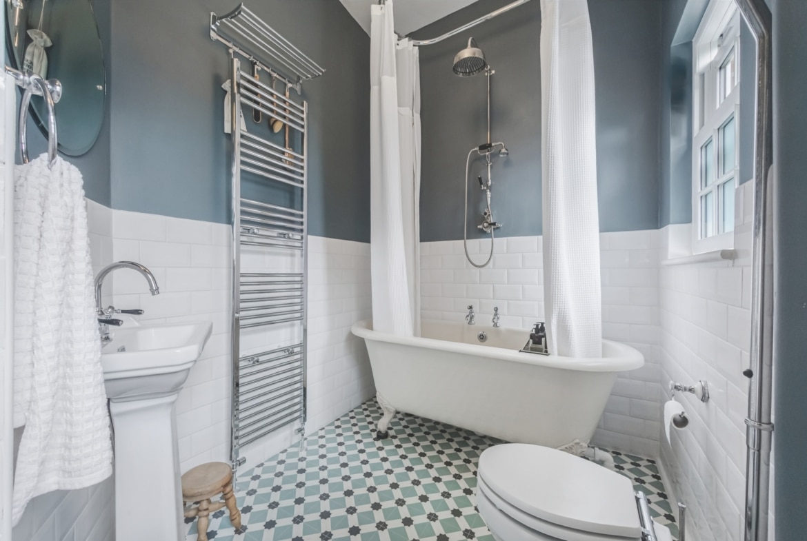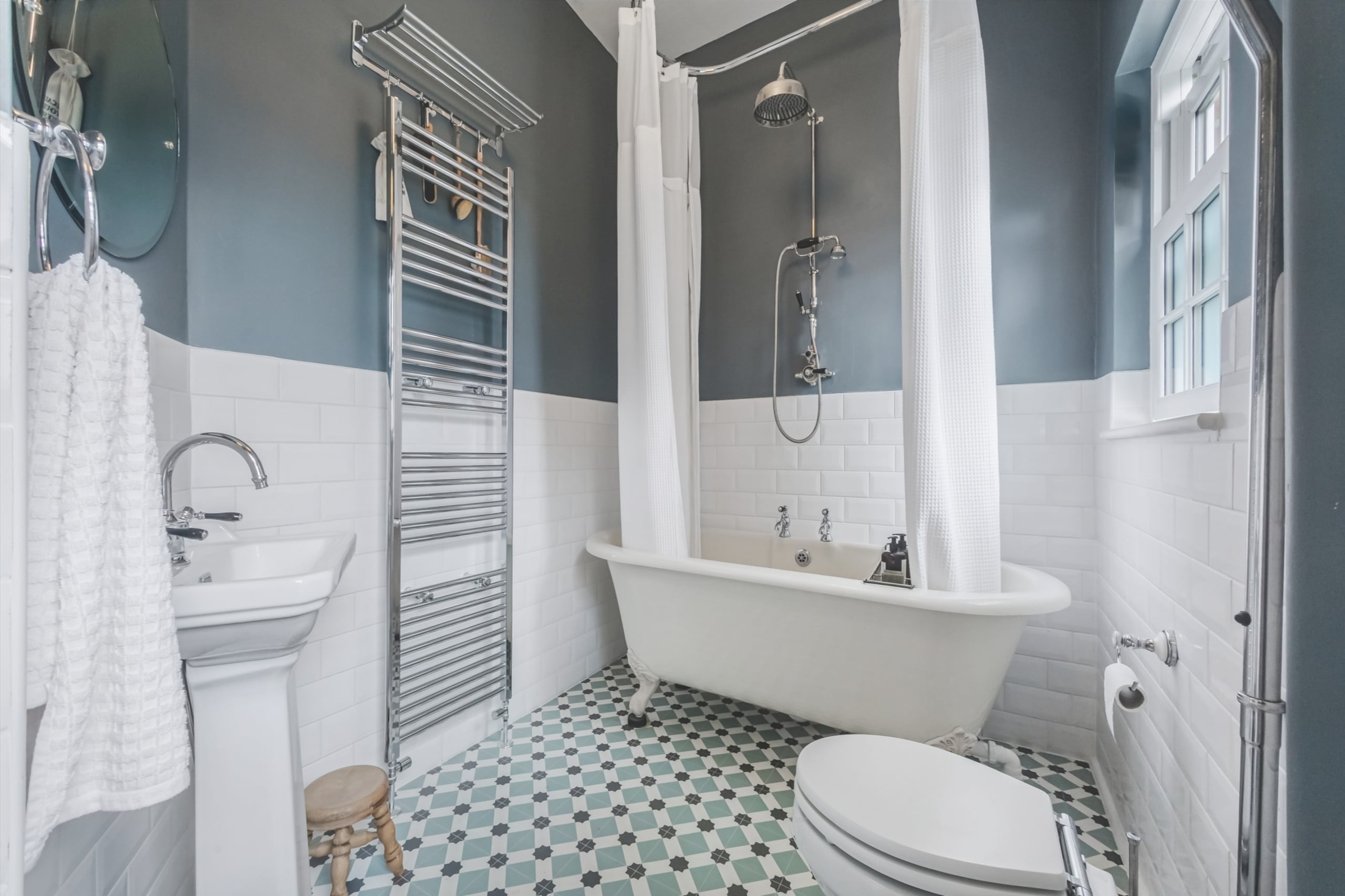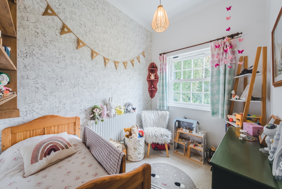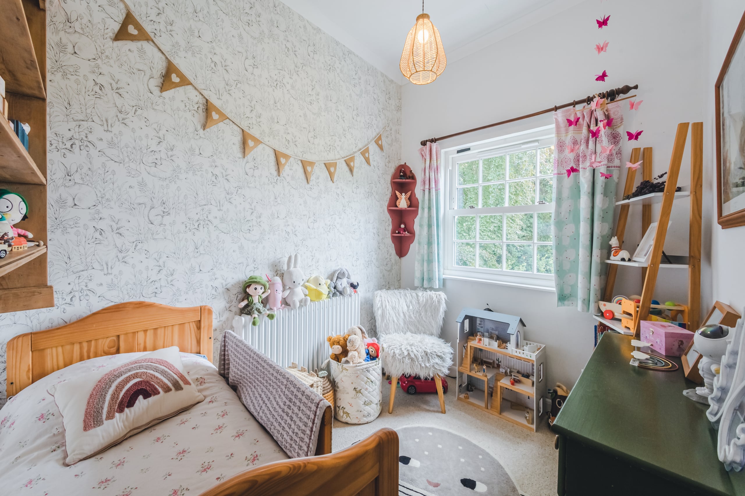 Upstairs, the master bedroom offers a generous retreat, complemented by a second well-proportioned double bedroom and a versatile third bedroom, ideal as a child’s room, study or dressing room. The beautifully appointed bathroom features a freestanding bath and separate shower, designed with the same attention to detail that runs throughout the home.