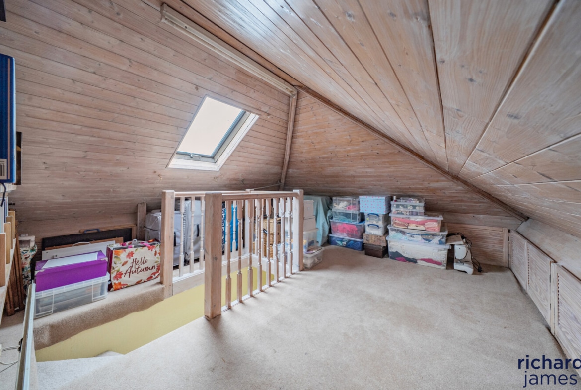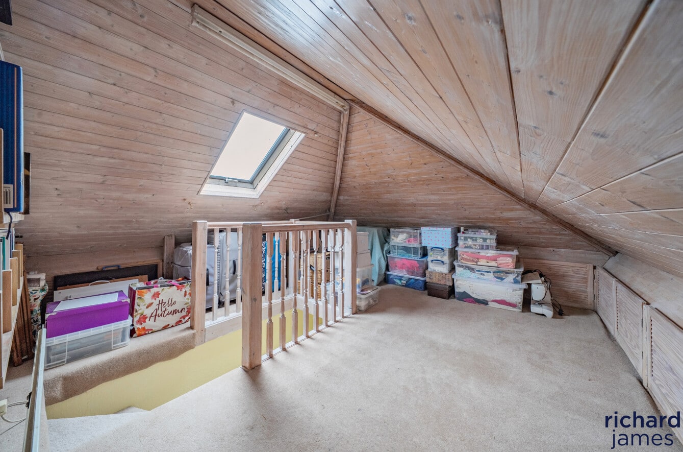 Upstairs, there are two generous double bedrooms, plus a third single bedroom with built-in storage. The converted loft adds even more flexibility — perfect as a home office, snug, or creative space.