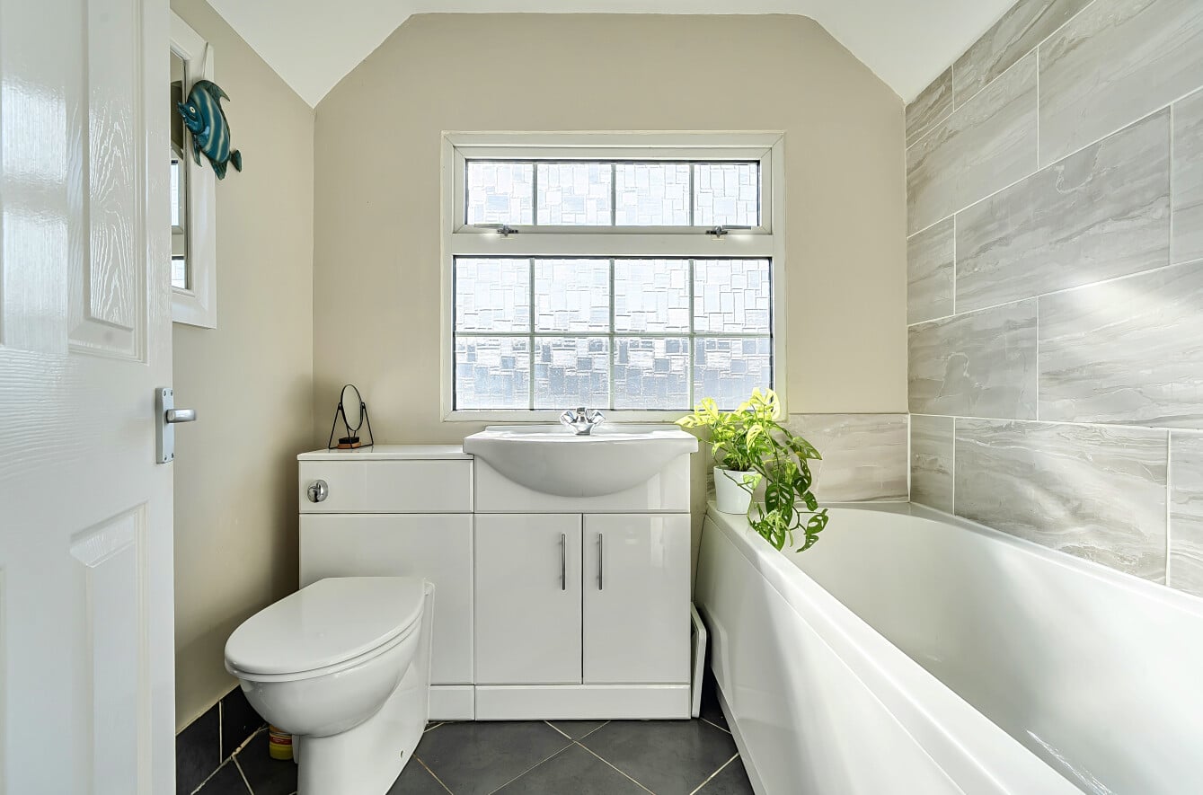 Upstairs, the property continues to offer well-balanced accommodation, with a particularly spacious principal bedroom and a further good-sized second bedroom. These are served by a family bathroom, with a layout designed for both comfort and convenience.
