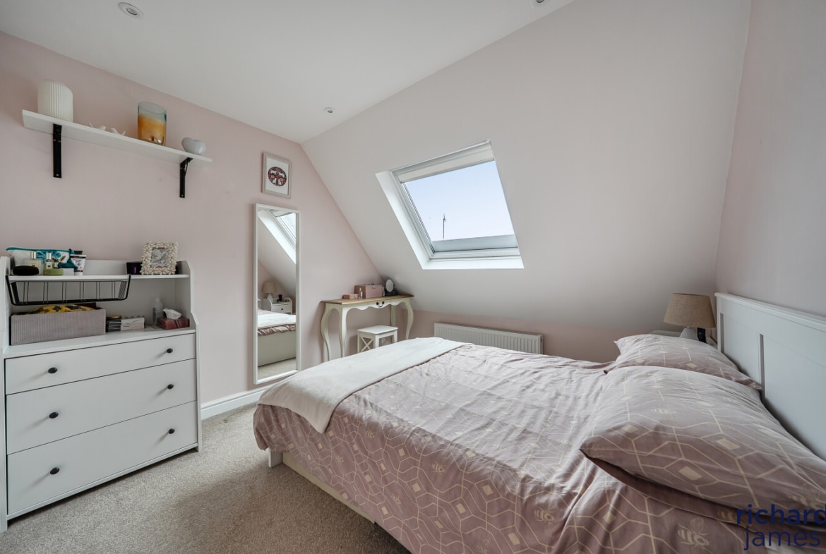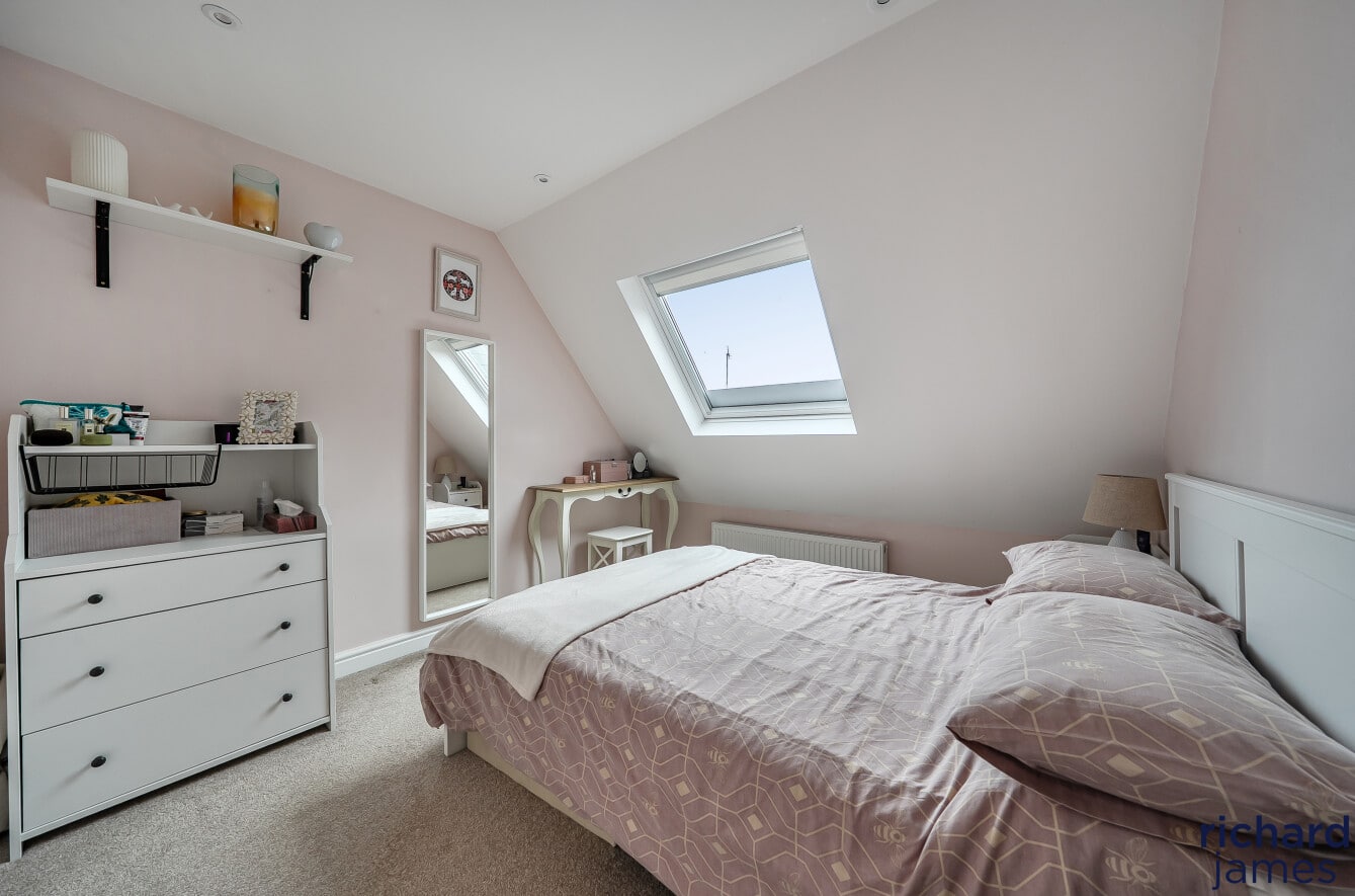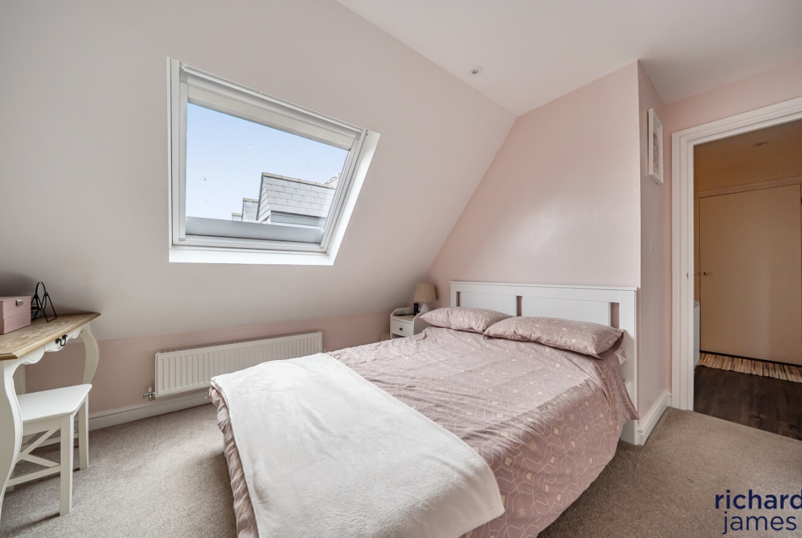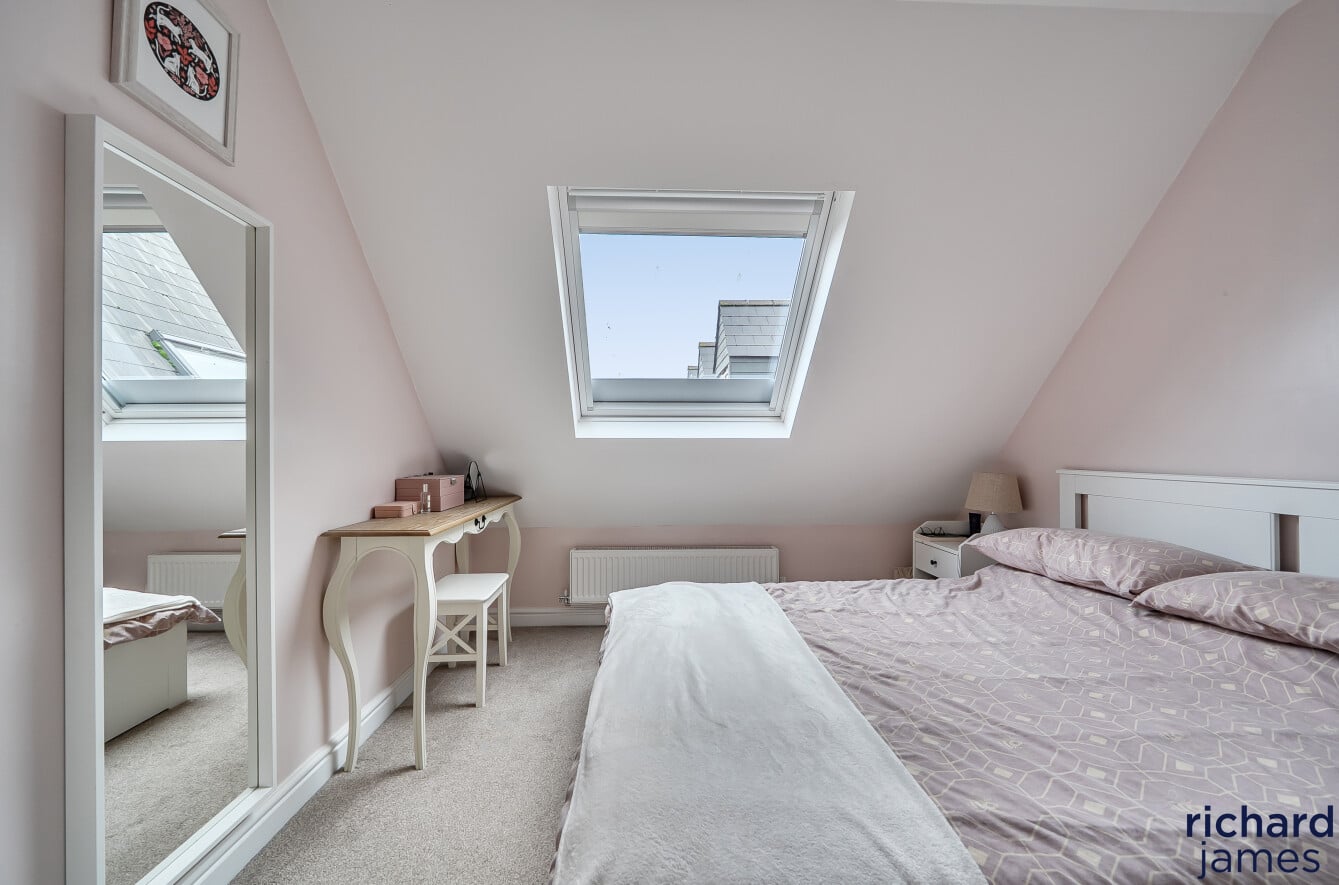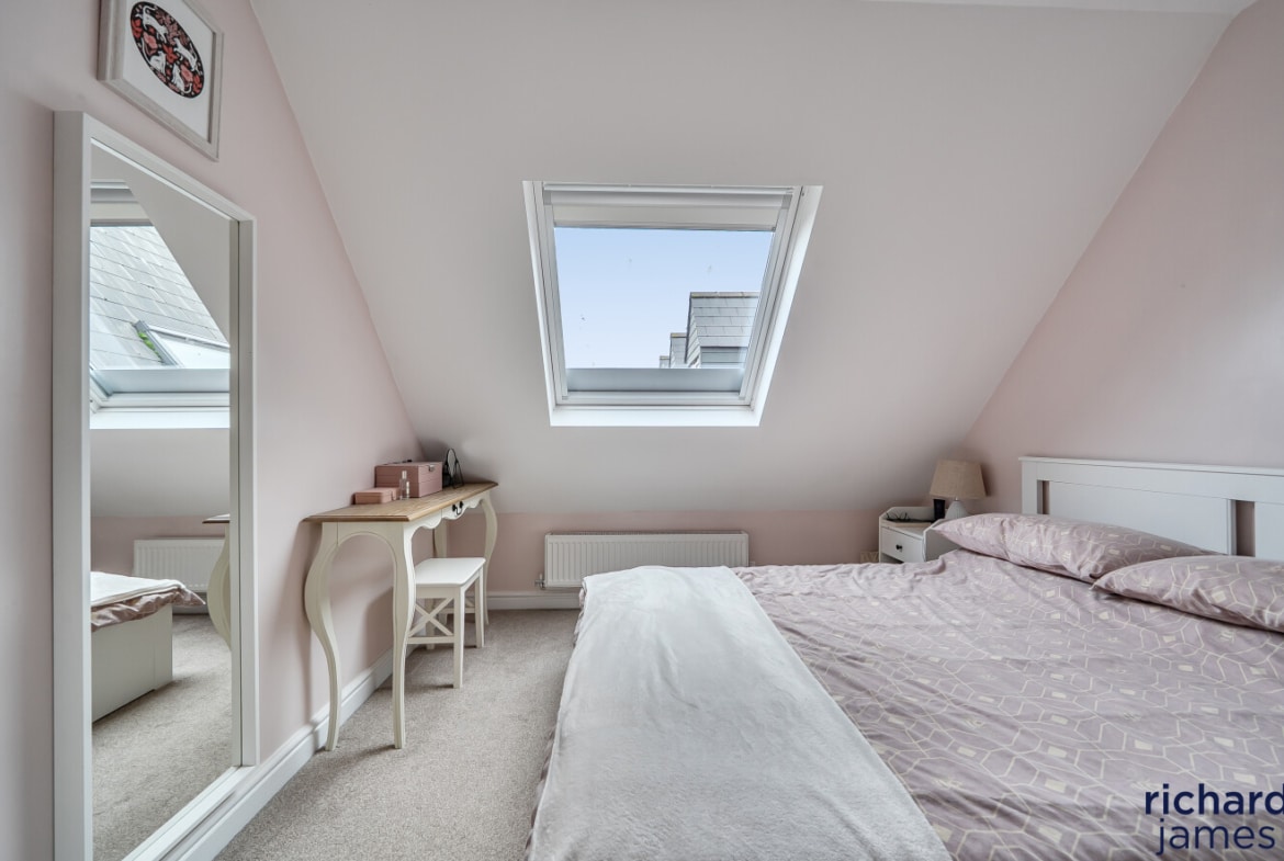 This charming top floor apartment offers a bright and contemporary open-plan kitchen and living area, featuring modern fitted units and integrated appliances. The space is well laid out for both relaxing and entertaining.