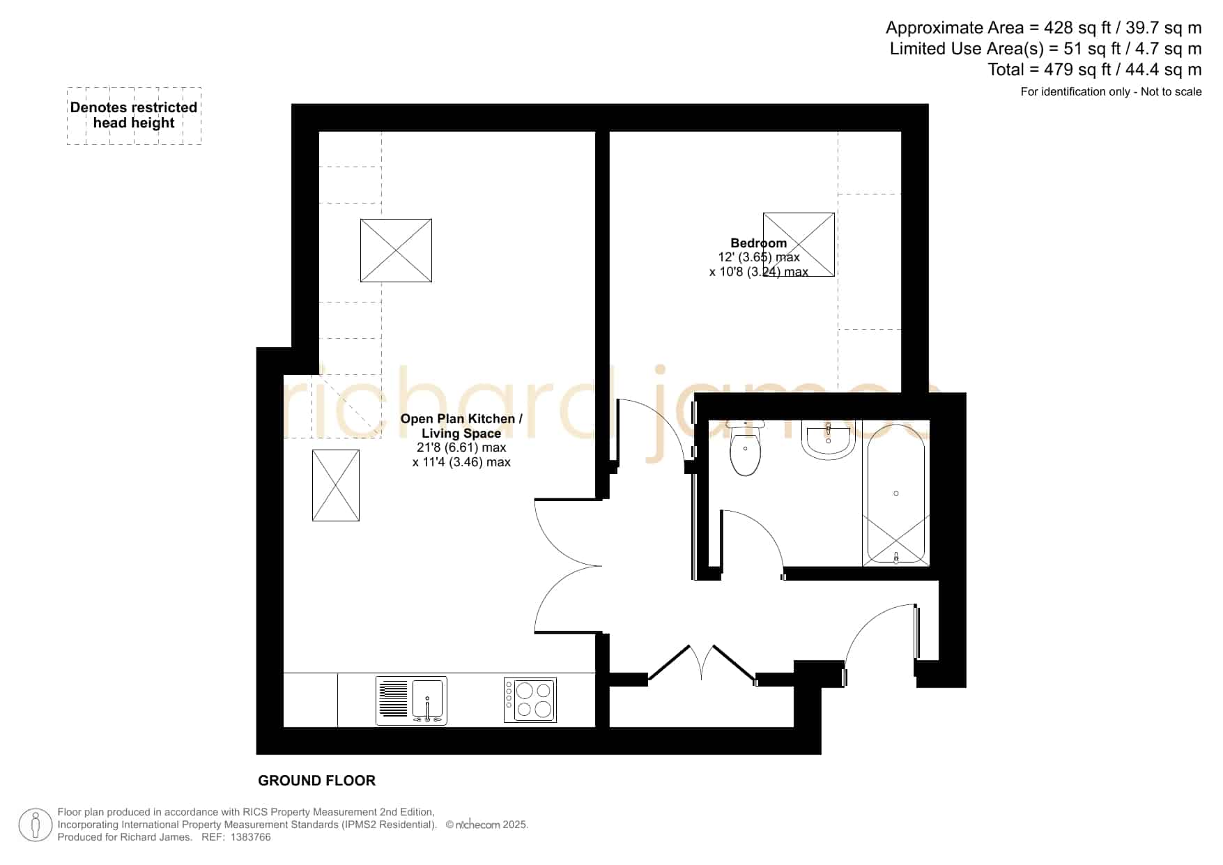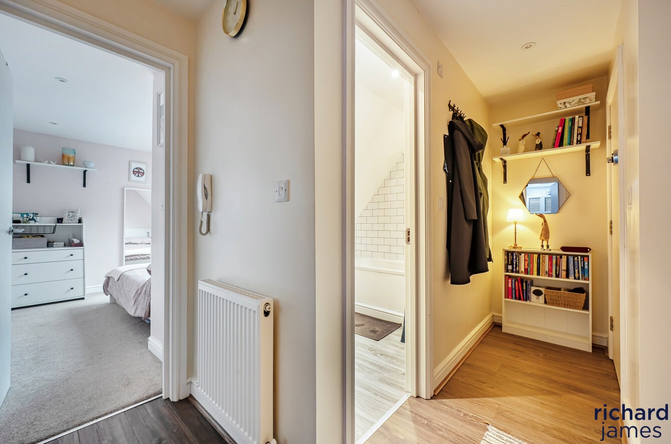 The entrance hall provides access to all rooms, with a useful storage area incorporated into the layout. Portions of the home include areas with restricted head height, adding character while still maintaining functional living space.