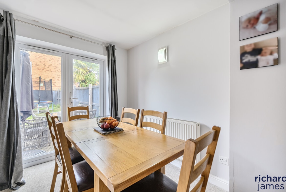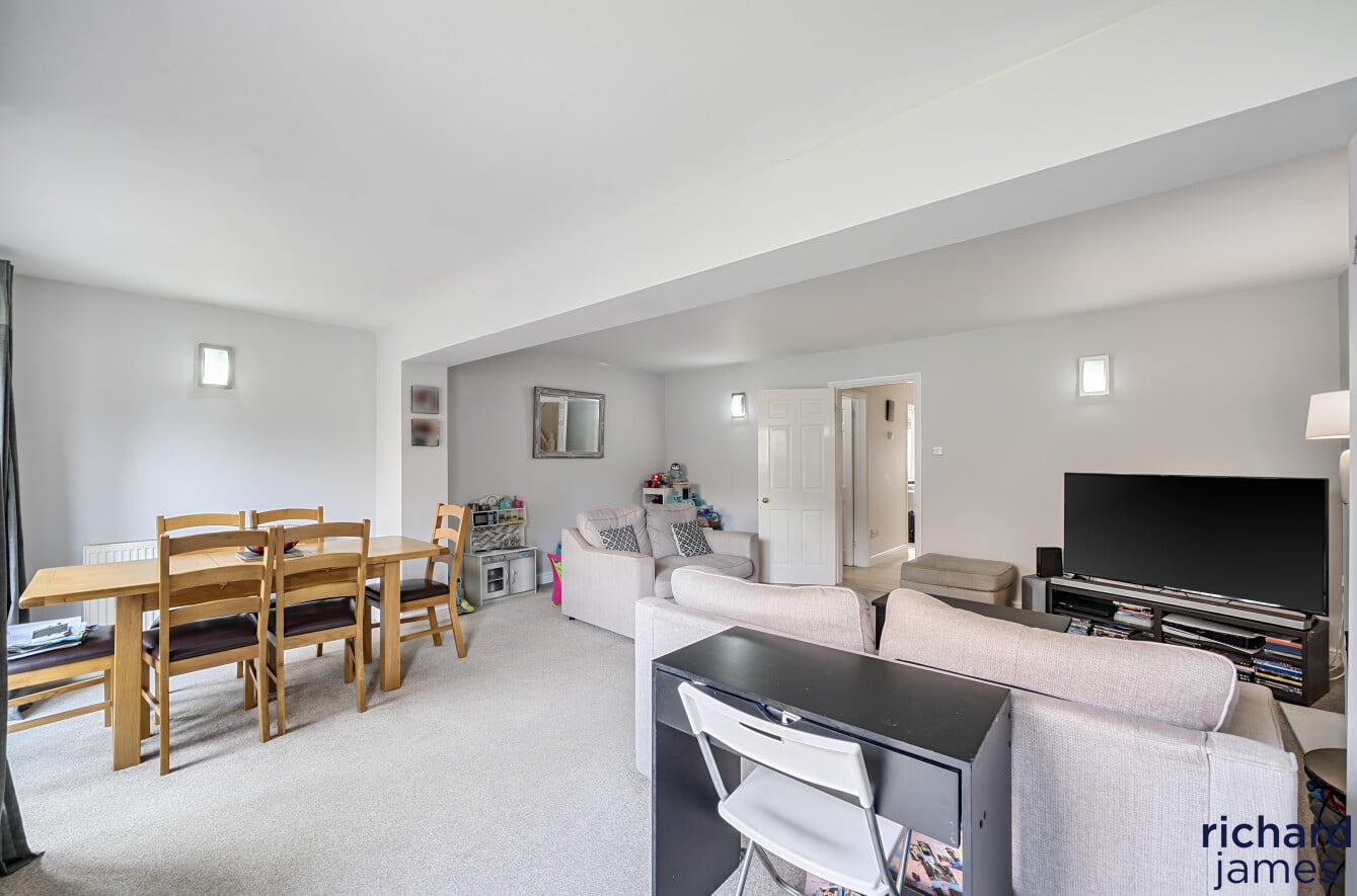 The ground floor welcomes you with a bright entrance hallway, leading to a separate front-facing kitchen that, while functional, presents an opportunity for a stylish update. There’s internal access to the integral garage, providing excellent storage or conversion potential. The rear of the property truly stands out, featuring a spacious extended living and dining area with two sets of French doors opening onto the garden—an ideal space for entertaining or relaxing. A downstairs WC completes the ground floor.