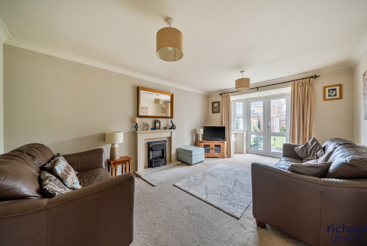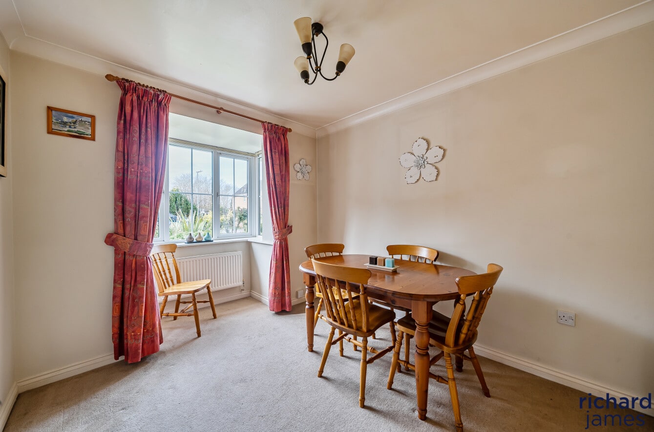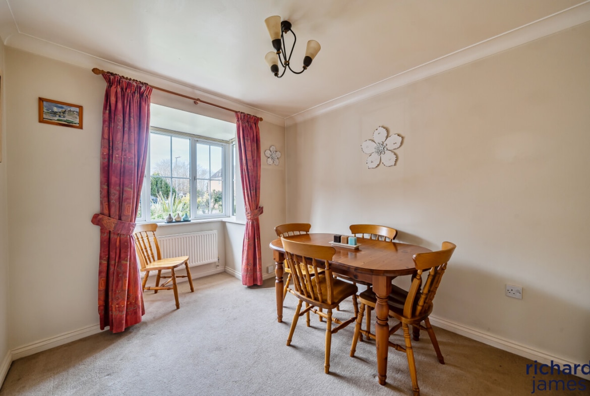 From the moment you step inside, the welcoming entrance hall sets the tone for the generous accommodation throughout. The ground floor features a convenient W.C, a bright bay‑fronted dining room, and an integral garage complete with power and lighting. A large living room, flooded with natural light and benefiting from French doors to the rear garden, provides a warm and relaxing family space.