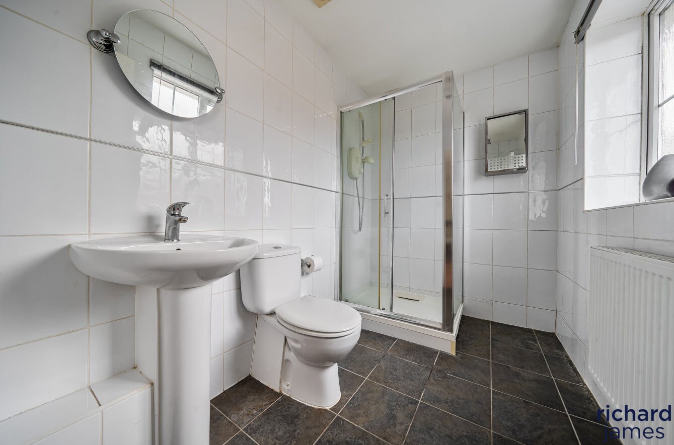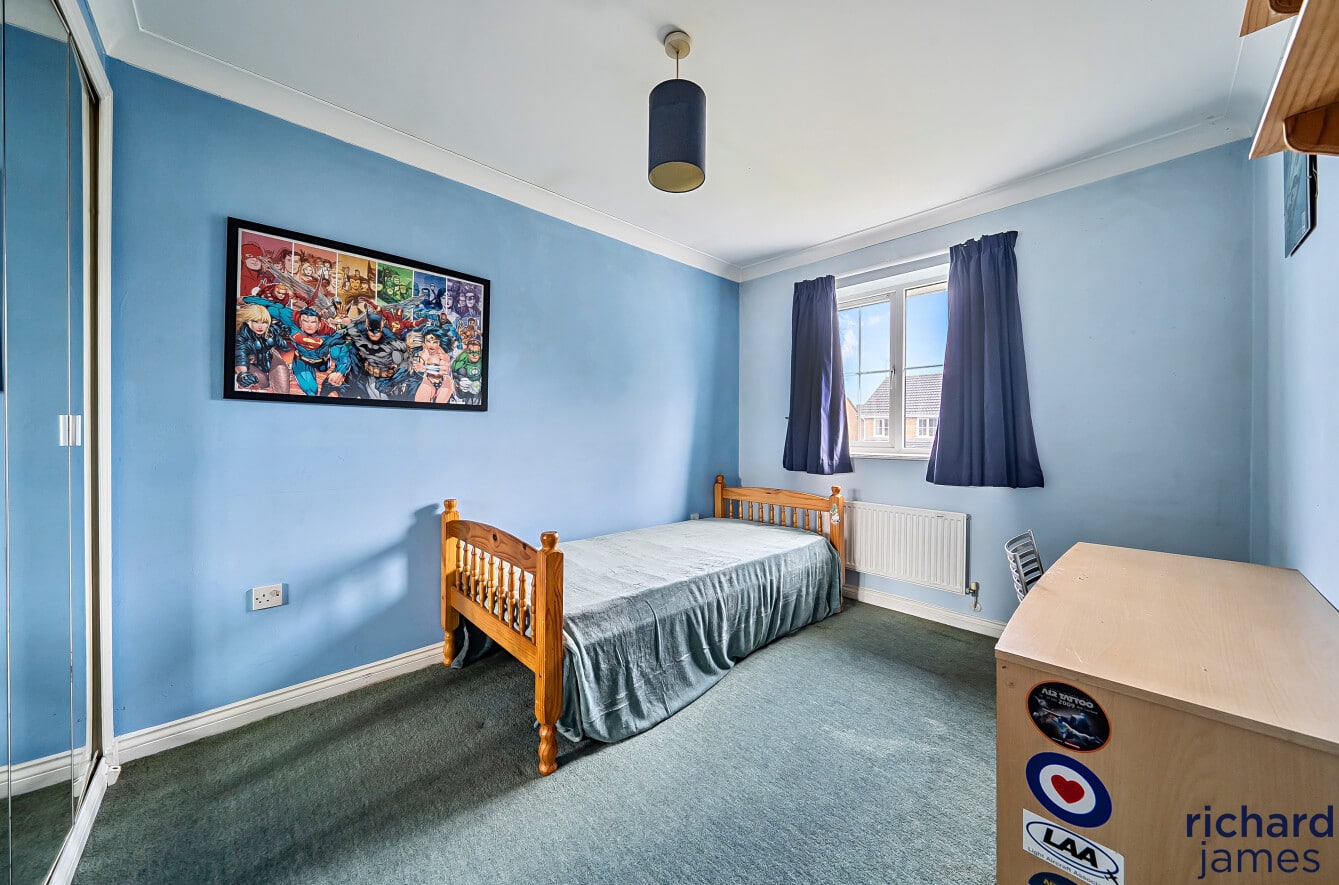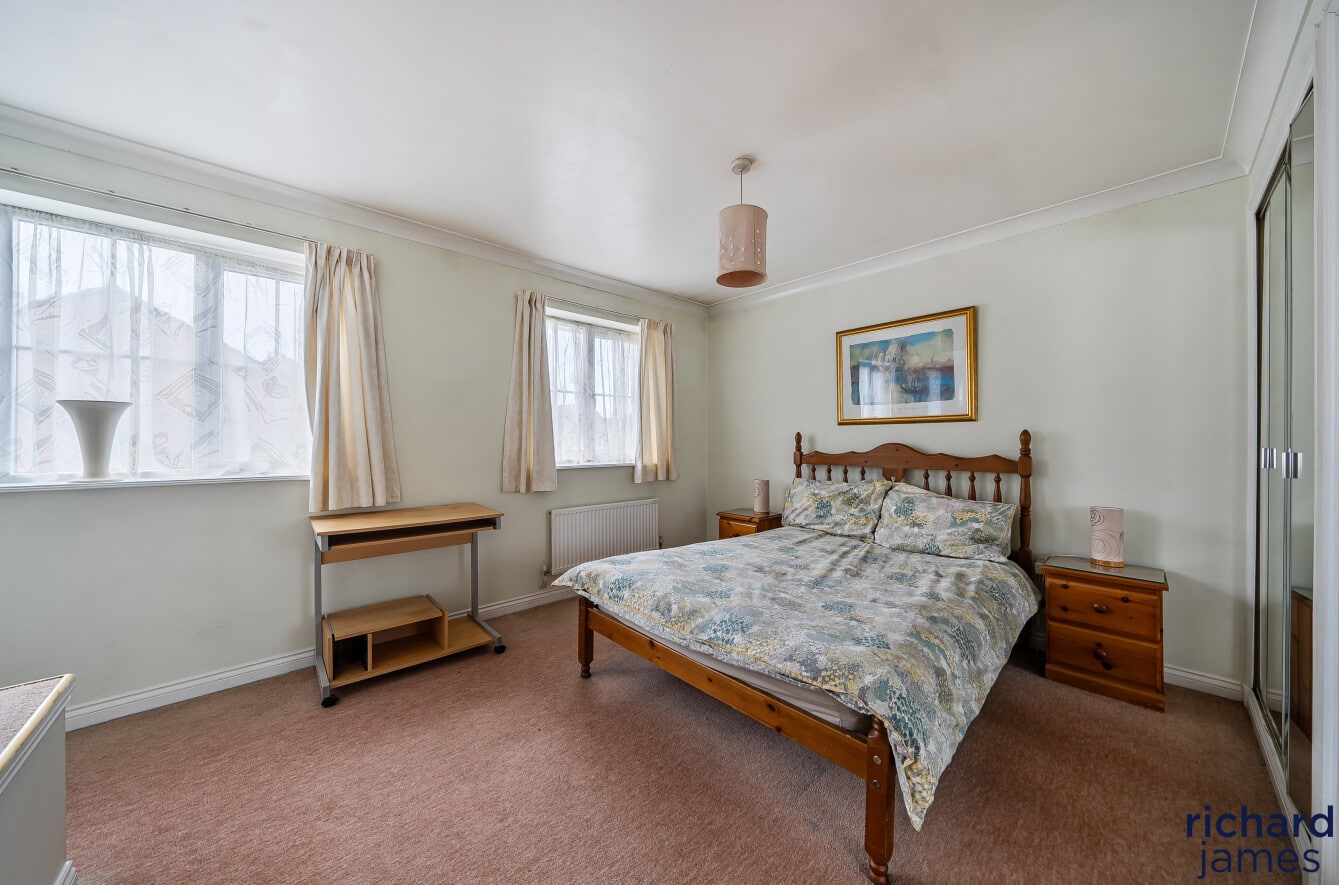 Upstairs, the property offers four versatile bedrooms. The main bedroom boasts fitted wardrobes and its own en‑suite shower room. Bedrooms two and three also feature fitted wardrobes, while bedroom four lends itself perfectly to a home office or child’s bedroom. A well‑appointed family bathroom completes the first‑floor accommodation.
