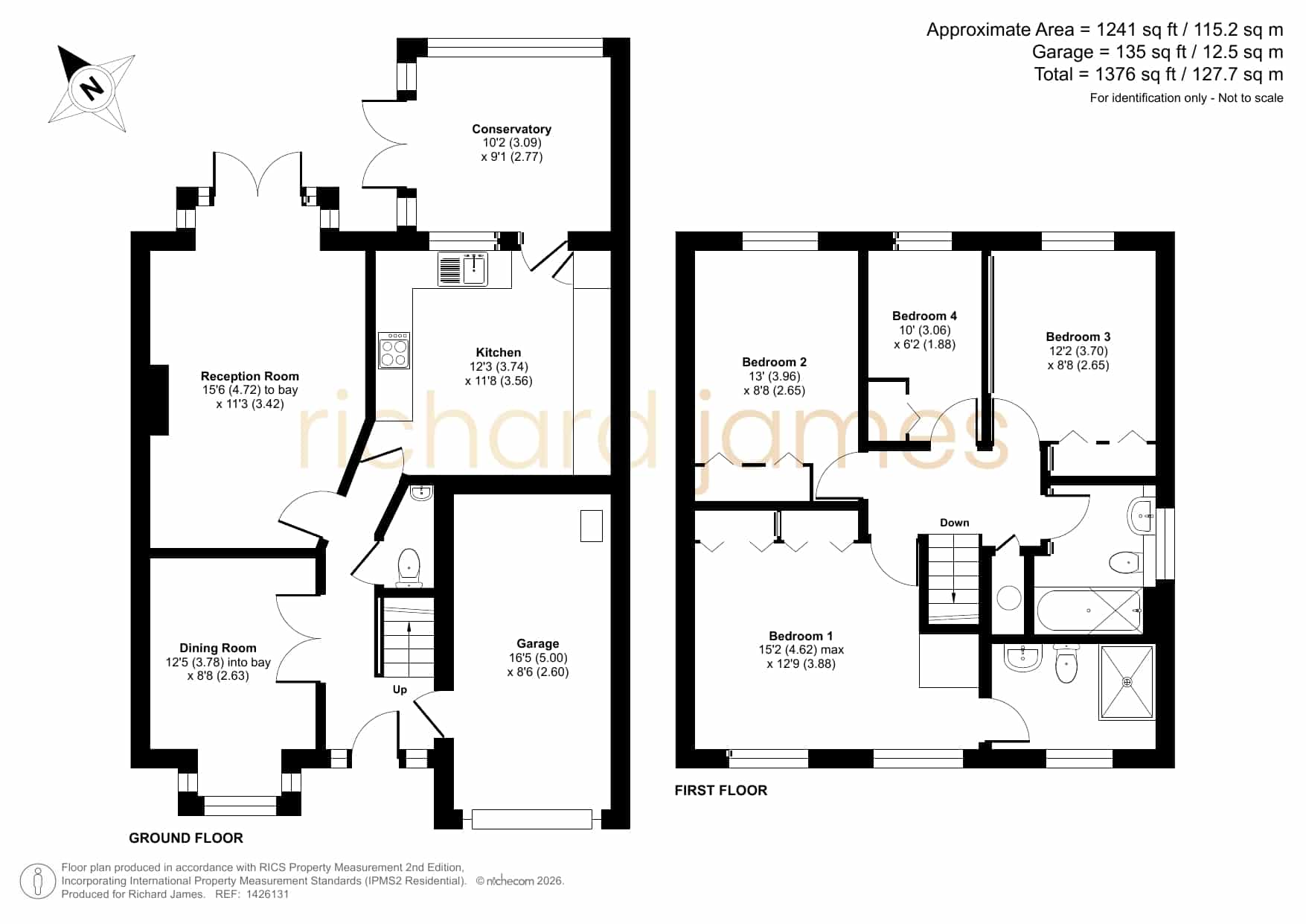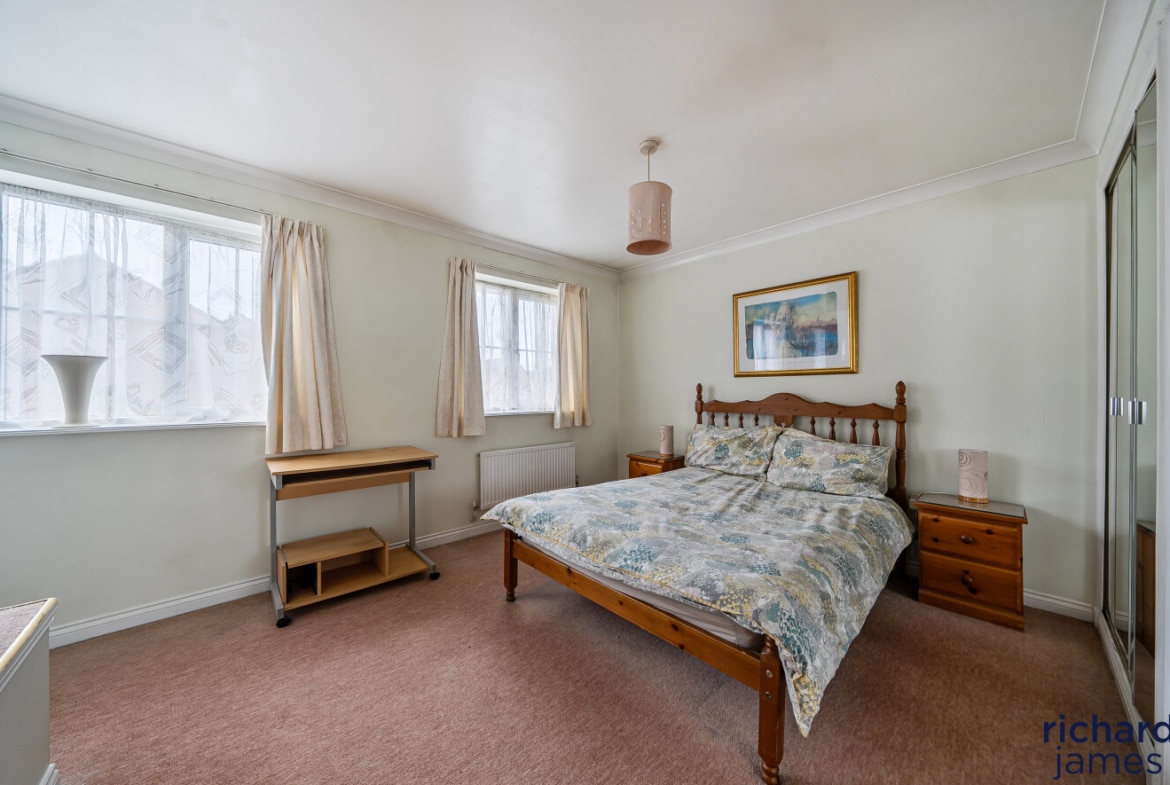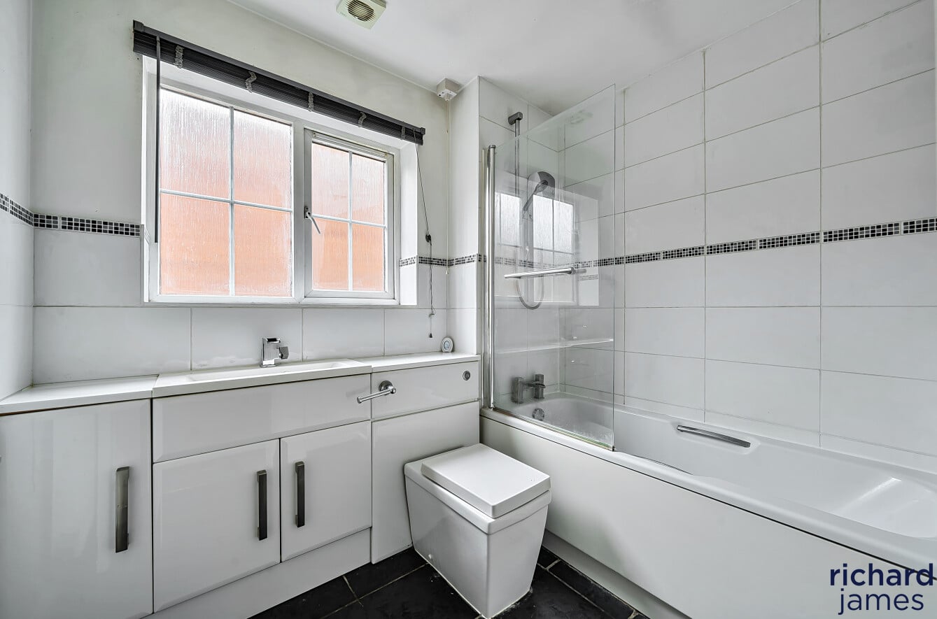 Upstairs, the property offers four versatile bedrooms. The main bedroom boasts fitted wardrobes and its own en‑suite shower room. Bedrooms two and three also feature fitted wardrobes, while bedroom four lends itself perfectly to a home office or child’s bedroom. A well‑appointed family bathroom completes the first‑floor accommodation.