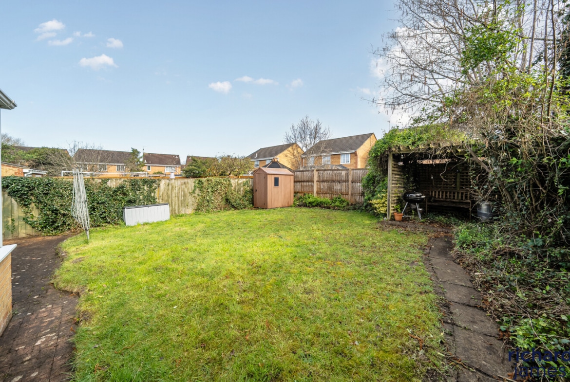 The private rear garden is a true highlight—fully enclosed and offering a wonderful combination of patio seating and barbecue area, a sizeable lawn, and a picturesque pergola, making it ideal for outdoor entertaining or relaxed family time. To the front, a generous driveway provides ample parking for multiple vehicles.