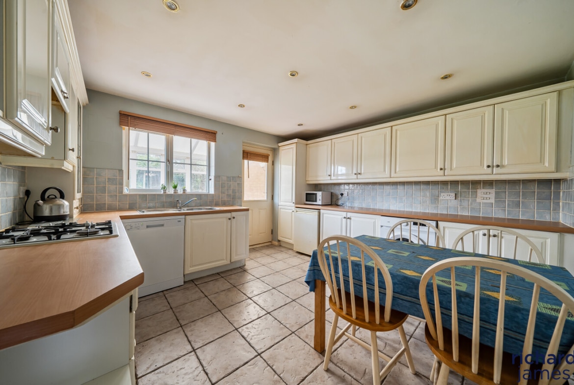 The home continues to impress with a well‑proportioned kitchen/breakfast room, ideal for busy mornings or casual dining, which leads through to a charming conservatory—a lovely spot to enjoy views of the garden all year round.