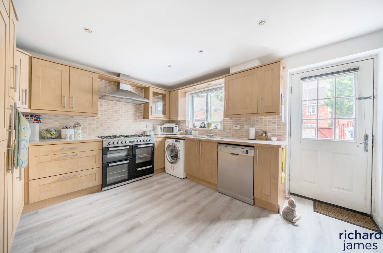 The first floor boasts a large reception room perfect for relaxing or entertaining, along with a well-sized third bedroom. On the second floor, you’ll find the principal bedroom with built-in storage, a further double bedroom, and a modern family bathroom.