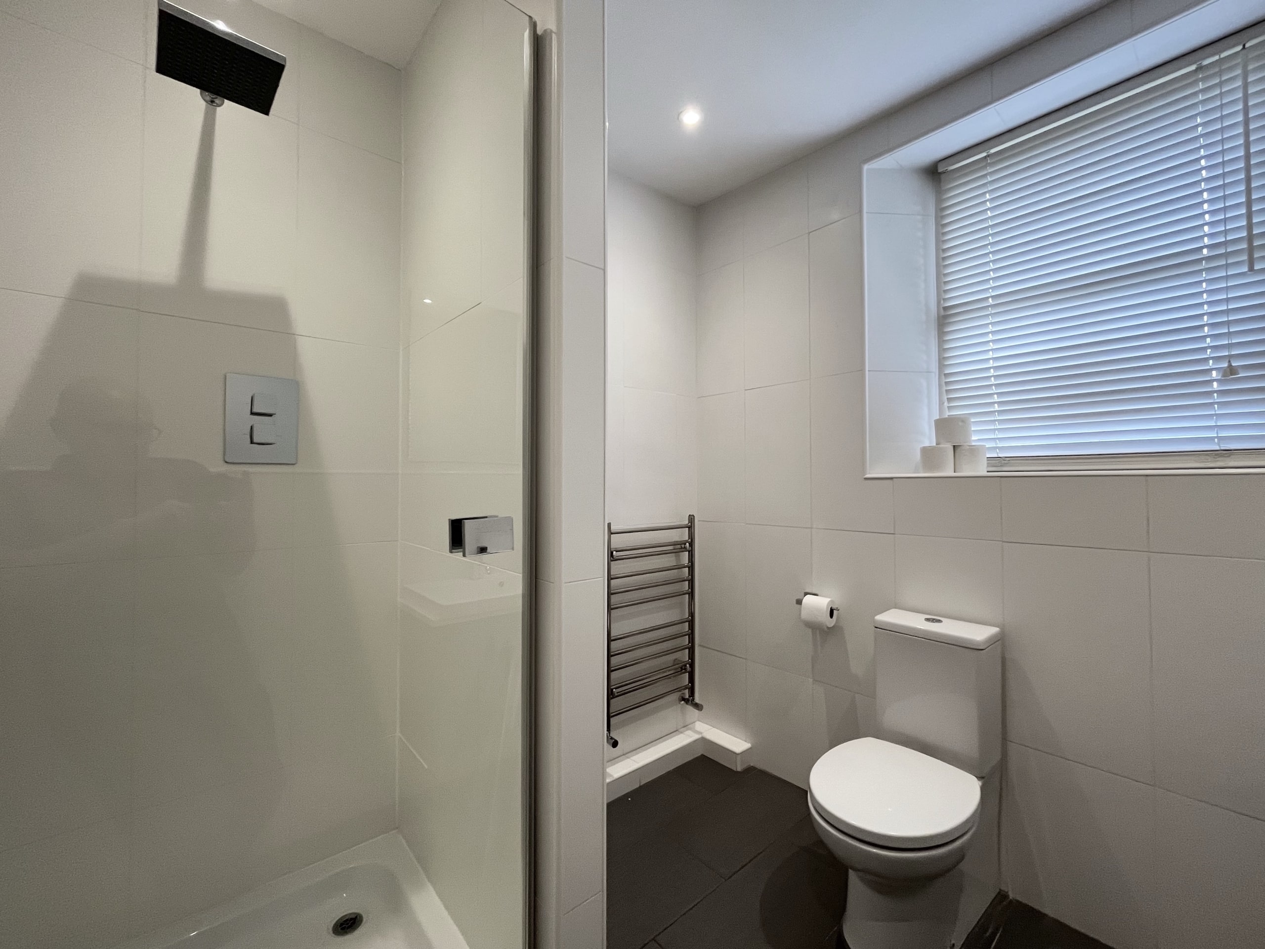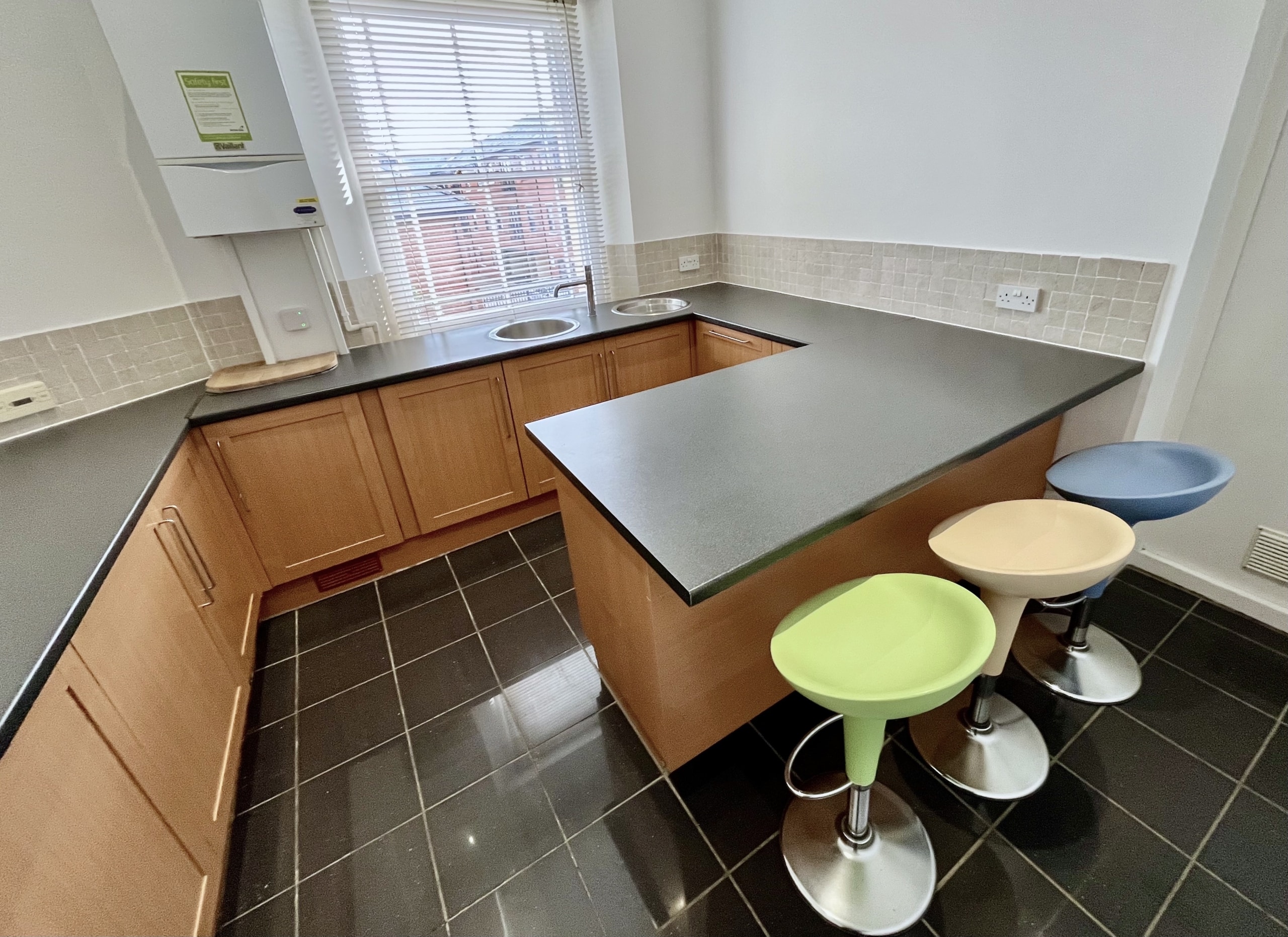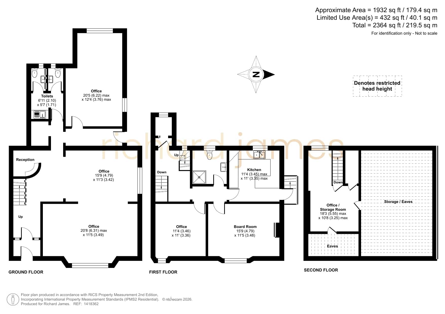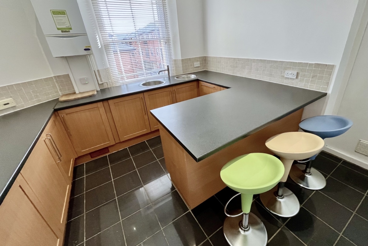 First Floor: This bright and thoughtfully configured level provides a substantial boardroom, or two further private offices, a well-appointed kitchen and additional shower/WC facilities, creating self-contained working environment ideal for teams or departmental use.