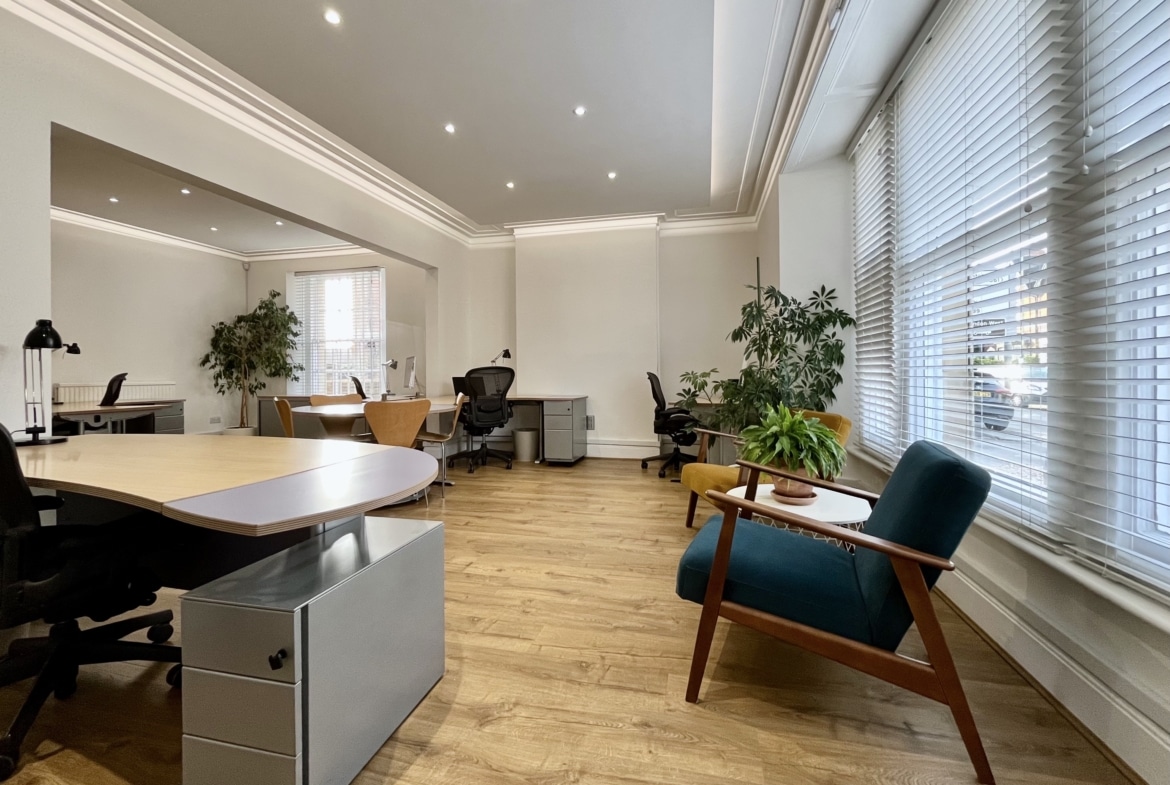 Extending to approximately 2,364 sq ft and arranged over three well-proportioned floors, this impressive period building combines architectural character with practical, modern workspace.