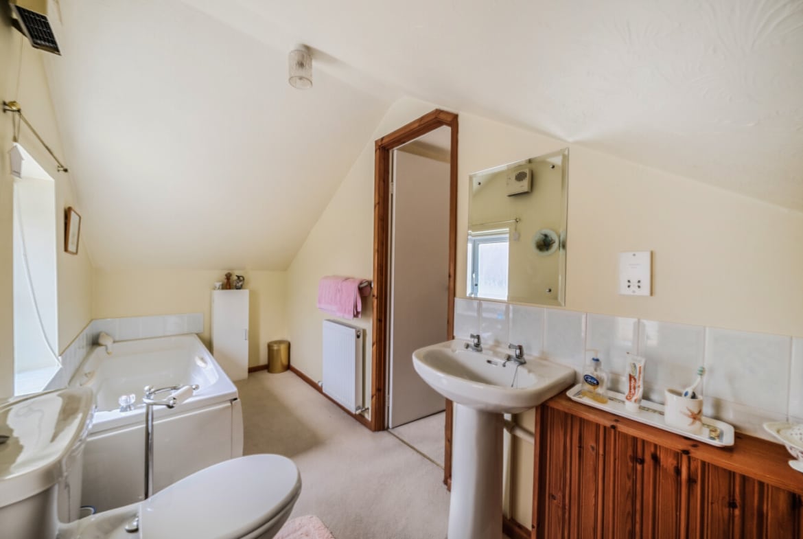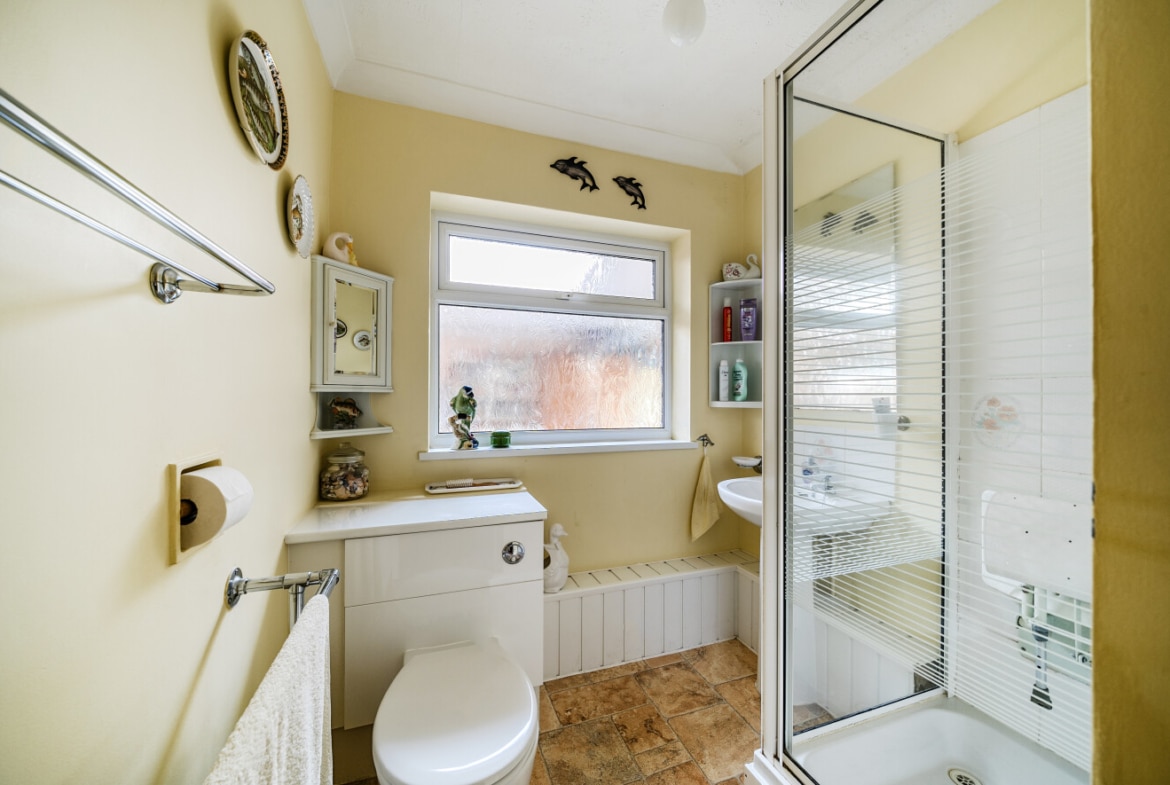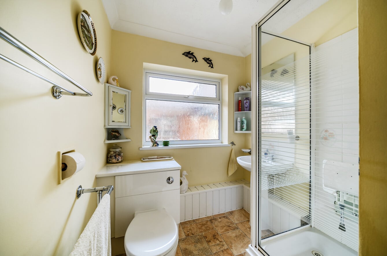 The accommodation is well laid out across two floors. On the ground floor, you’ll find a comfortable guest bedroom, a spacious living room, a separate dining room, a kitchen/breakfast room, and a shower room. There’s also a bright and airy conservatory that opens directly onto the rear garden — perfect for enjoying the outdoors year-round.