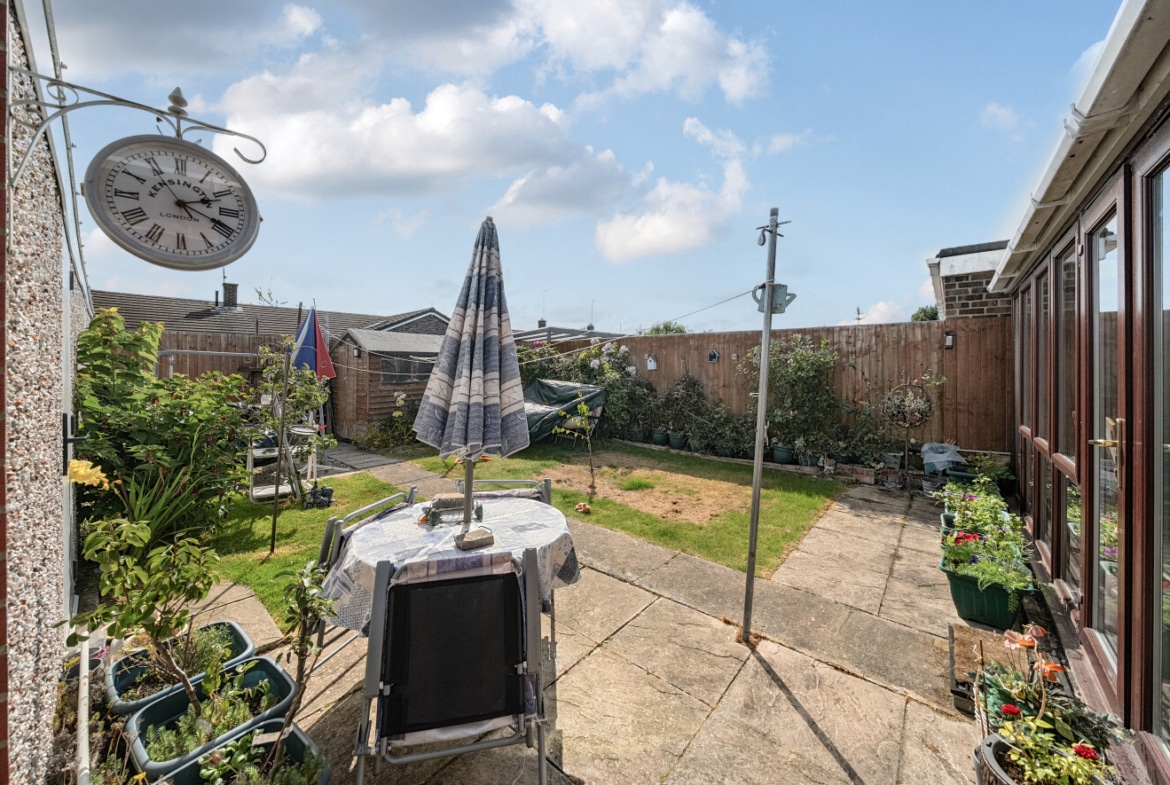 Step outside into a beautifully maintained garden that enjoys plenty of sun throughout the day – a true sun trap and a wonderful spot to relax. The bungalow also benefits from a garage and driveway parking, adding both convenience and practicality.