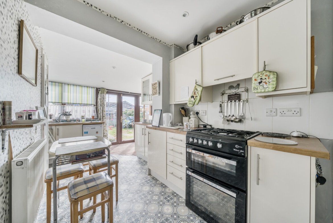 The property boasts two generous double bedrooms at the front, a bright and welcoming living room that flows through internal bi-fold doors into a spacious extension, and a stylish wrap-around kitchen that makes the most of the garden views. The layout is ideal for both everyday comfort and entertaining guests.