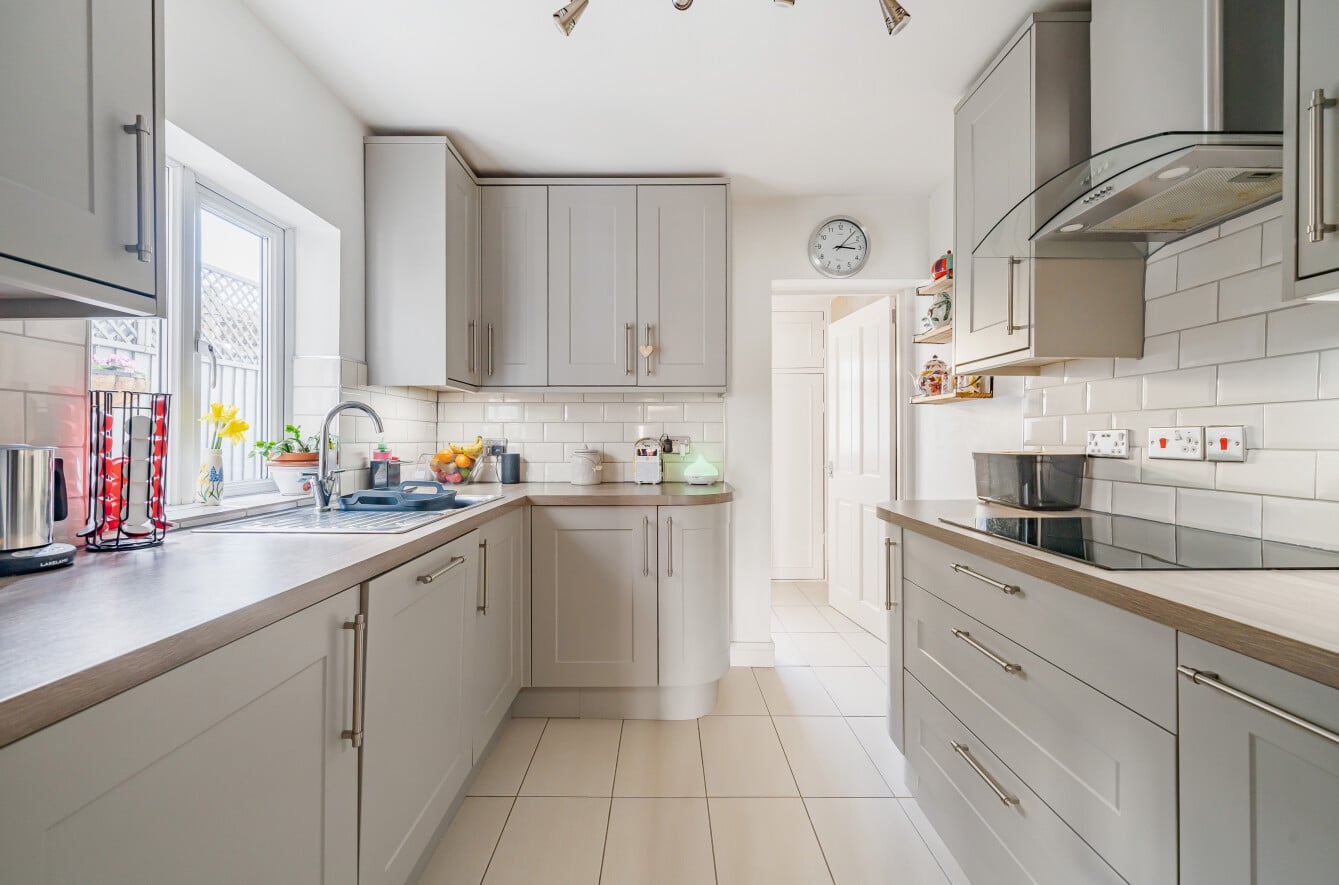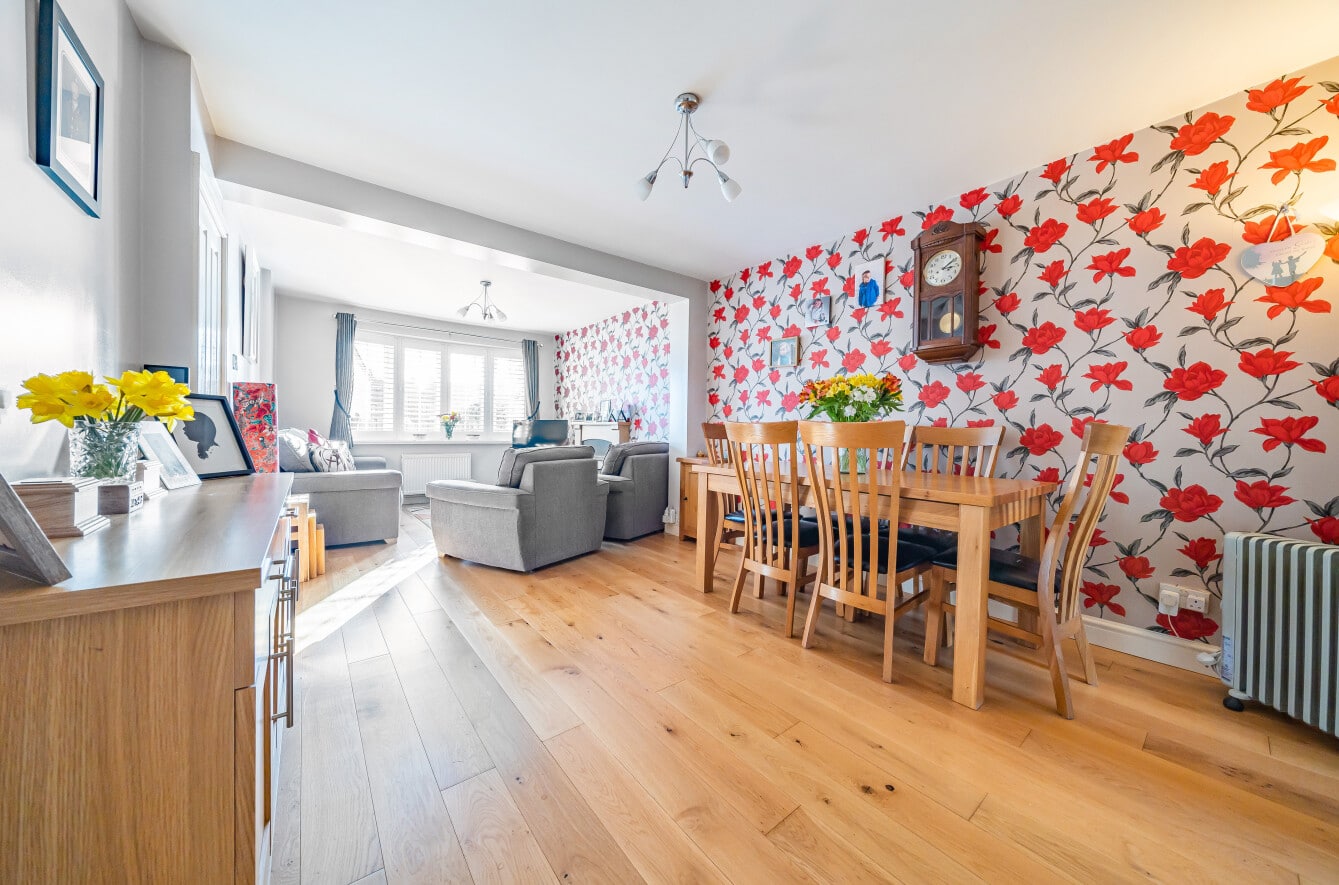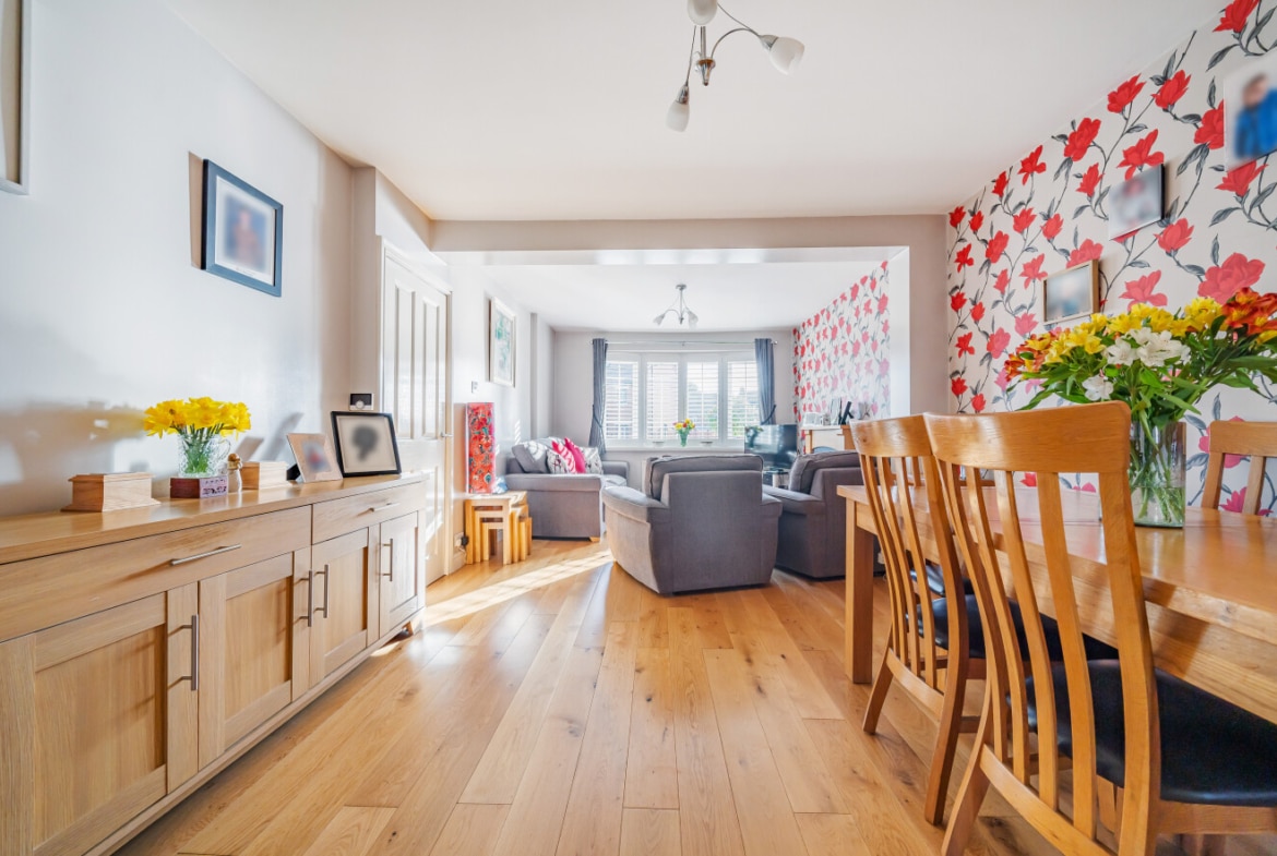 The deceptively spacious accommodation has been finished to a very high standard throughout and laid out over three floors, perfect for a growing family. Which comprises; welcoming Hallway, 23′ Sitting / Dining Room, a lovely refitted Kitchen with integrated appliances, modern Family Bathroom and Lobby leading out into the Rear Garden. With Three of the double Bedroom and Ensuite to Bedroom One, to the first floor, with staircase leading up to a further double Bedroom, with Velux windows.