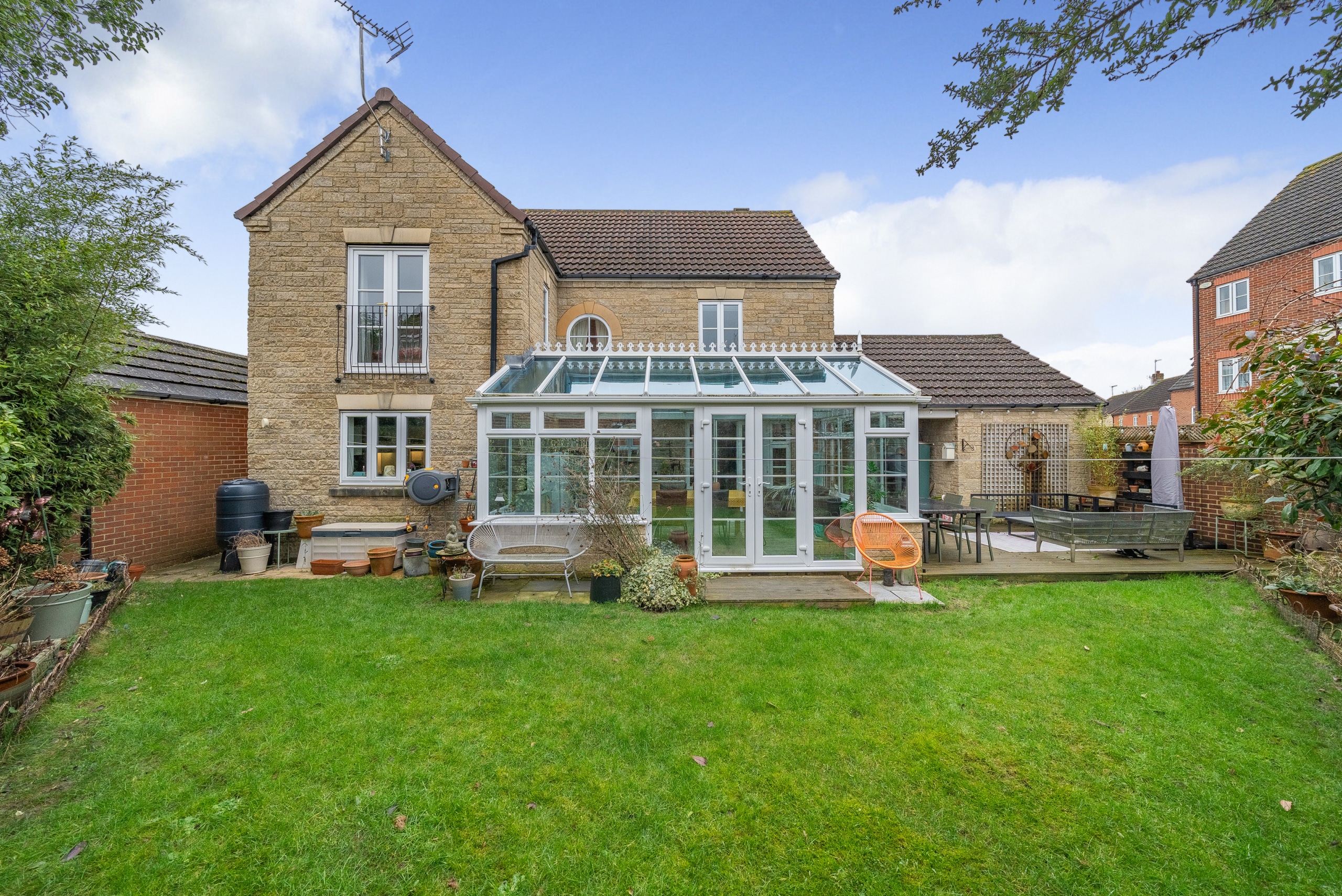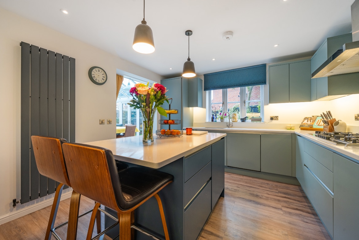 This beautiful four-bedroom detached family home has been meticulously improved throughout to offer a delightful living space. The ground floor features an inviting entrance hall, a cosy sitting room, a separate study/playroom, and a stunning kitchen with quartz worktops that flows seamlessly into a spacious conservatory. Completing the ground floor is a convenient WC. Upstairs, you will find four well-appointed bedrooms, with the master boasting a generous size, vaulted ceiling, ensuite bathroom, and a Juliet balcony. The property is further complemented by three additional bedrooms and a family bathroom.
