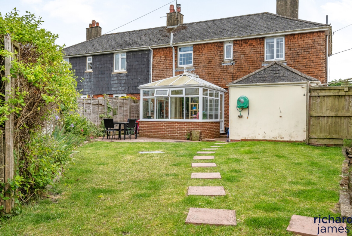 Outside are enclosed front and rear gardens. Driveway parking and tandem garage/workshop.