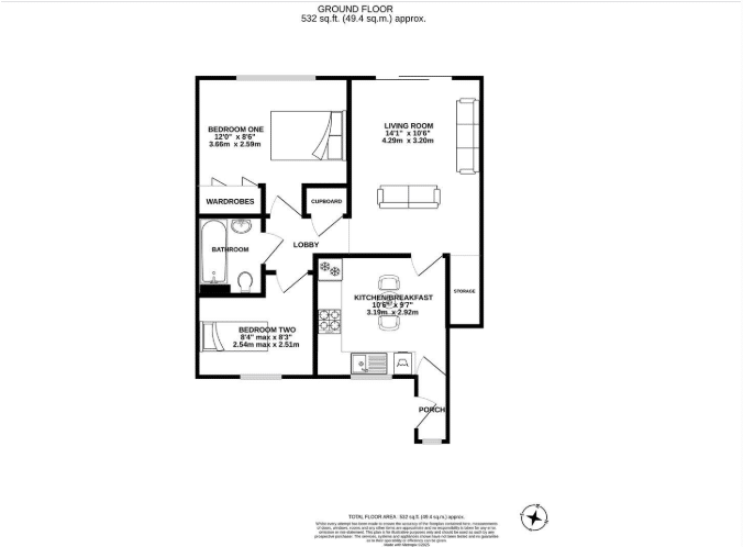 There are two bedrooms: a spacious main bedroom complete with built-in wardrobes, and a versatile second bedroom that works perfectly as a guest room, nursery, or home office. The bathroom is centrally positioned and well laid out for everyday convenience.