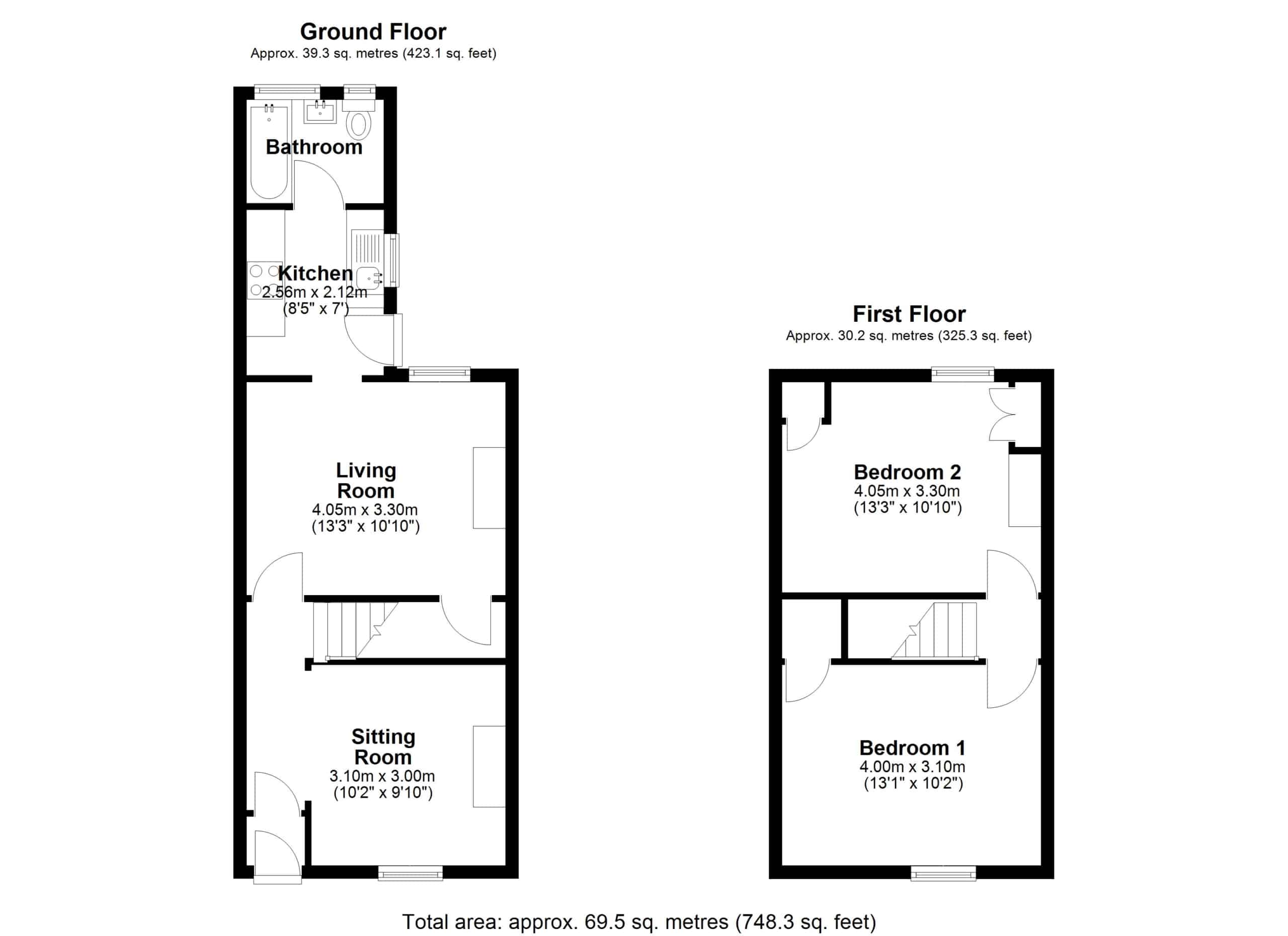 The property offers original charm and character, with the accommodation comprising of Entrance Porch, Hallway, which opens to the Sitting Room and Living Room with gas fire, log burner effect, both have original exposed floorboards, modern fitted Kitchen and Bathroom, with white three piece suite. With the two double Bedrooms, to the first floor.