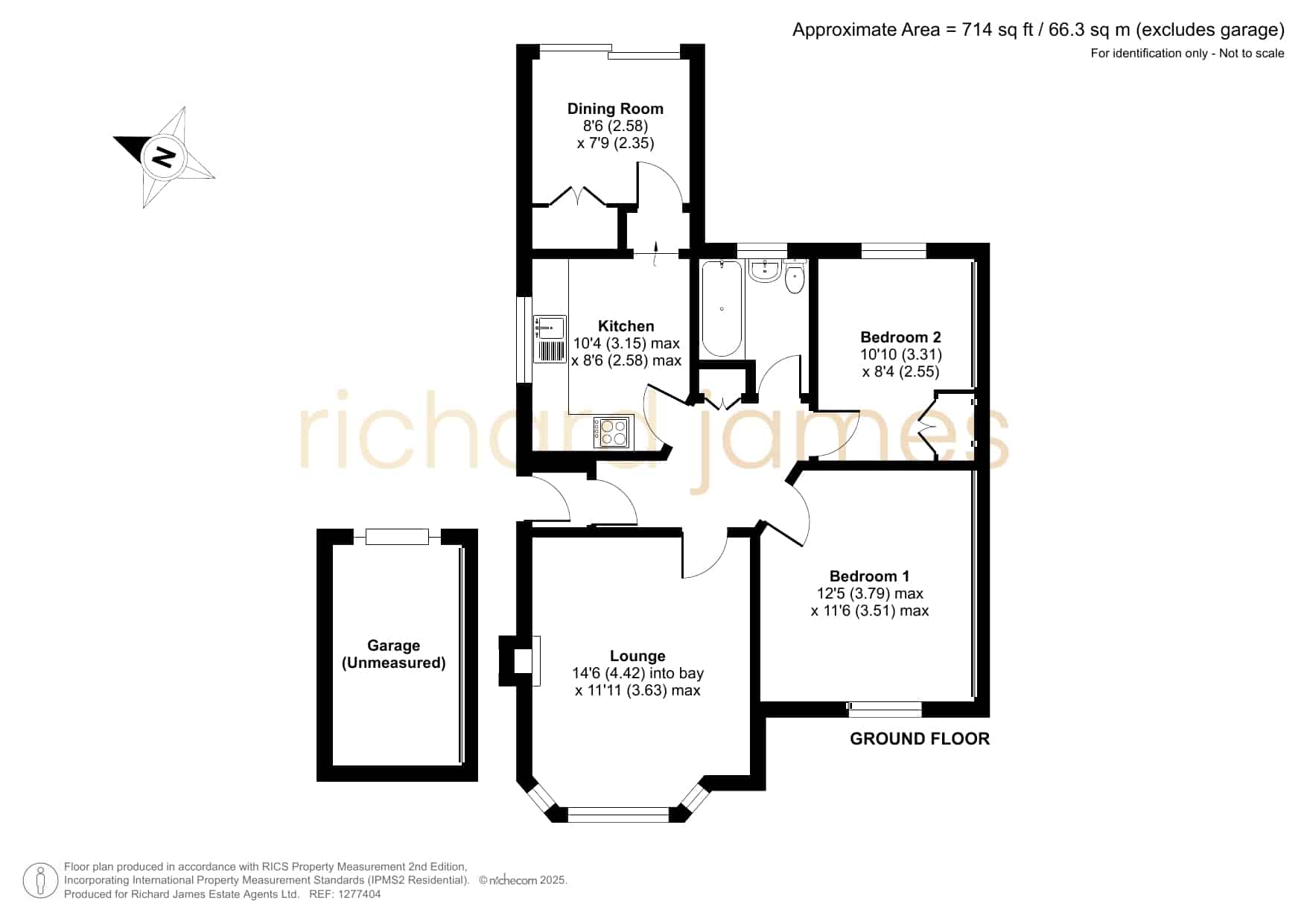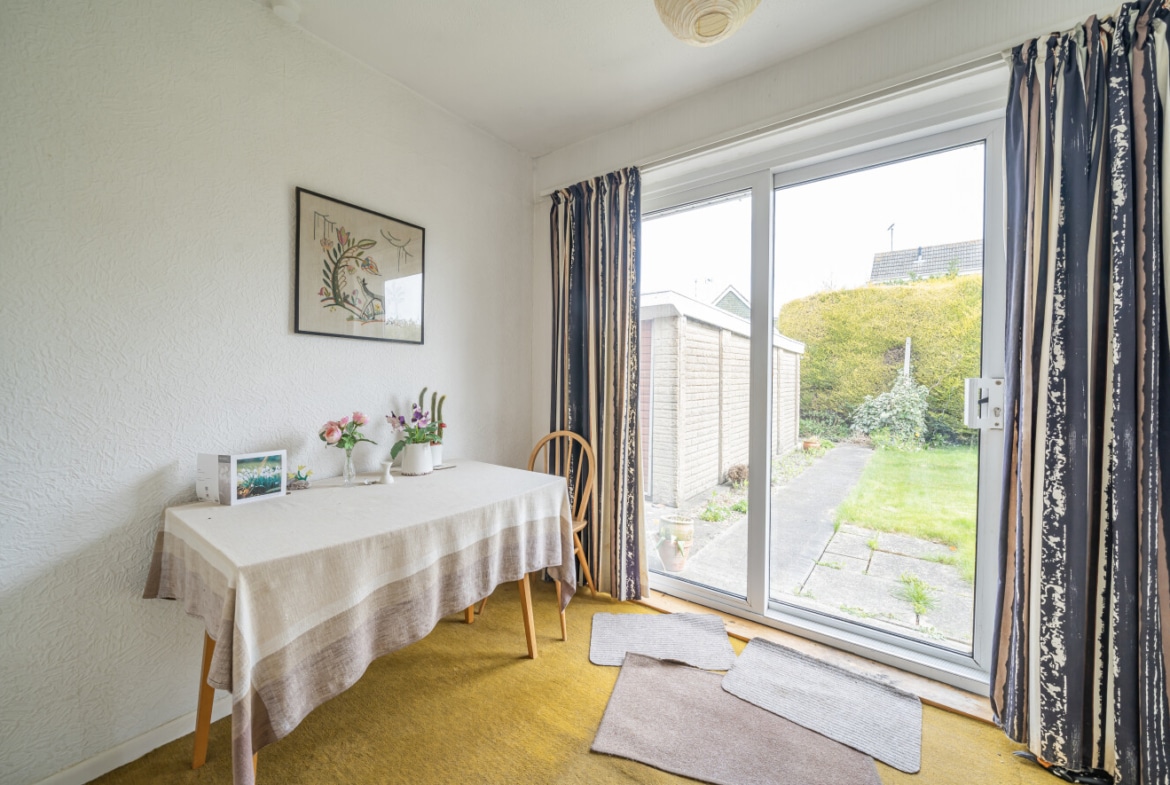 The property briefly comprises entrance hall, living/dining room, kitchen, dining area/bedroom 3, two further bedrooms and bathroom. Outside are enclosed gardens, garage and driveway parking.