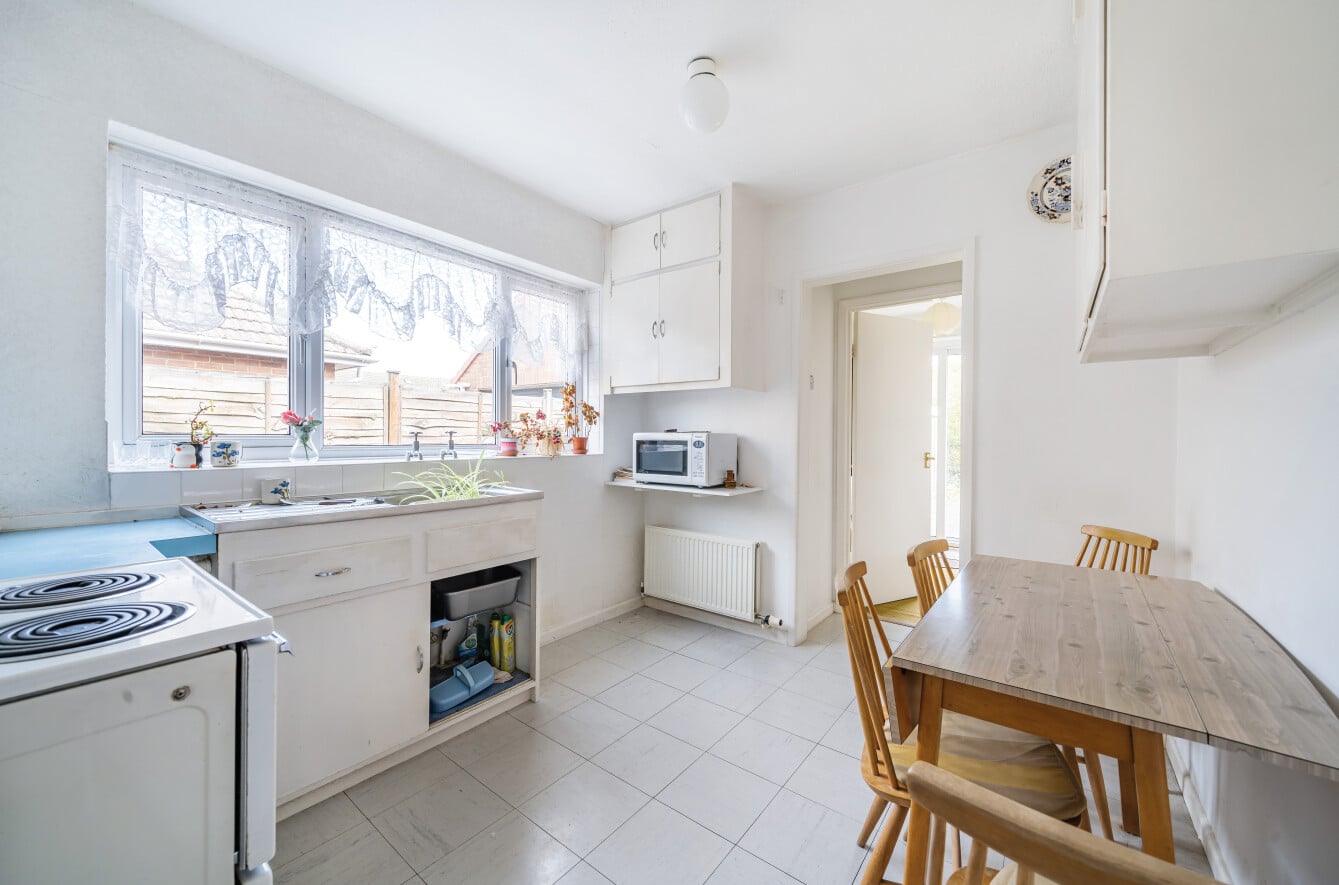 A chain free two/three bedroom semi detached bungalow with garage requiring light modernisation located in the village of Wroughton.