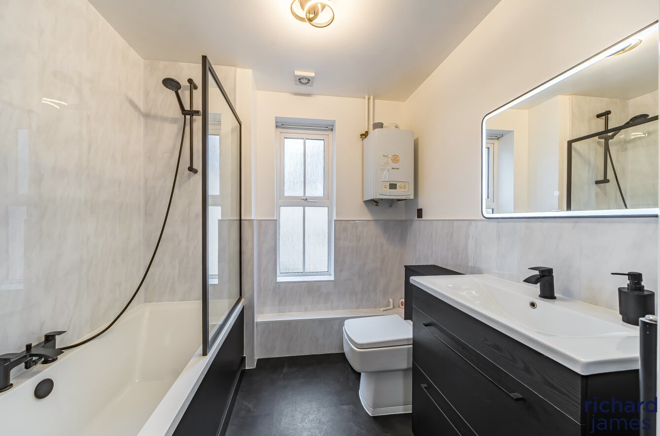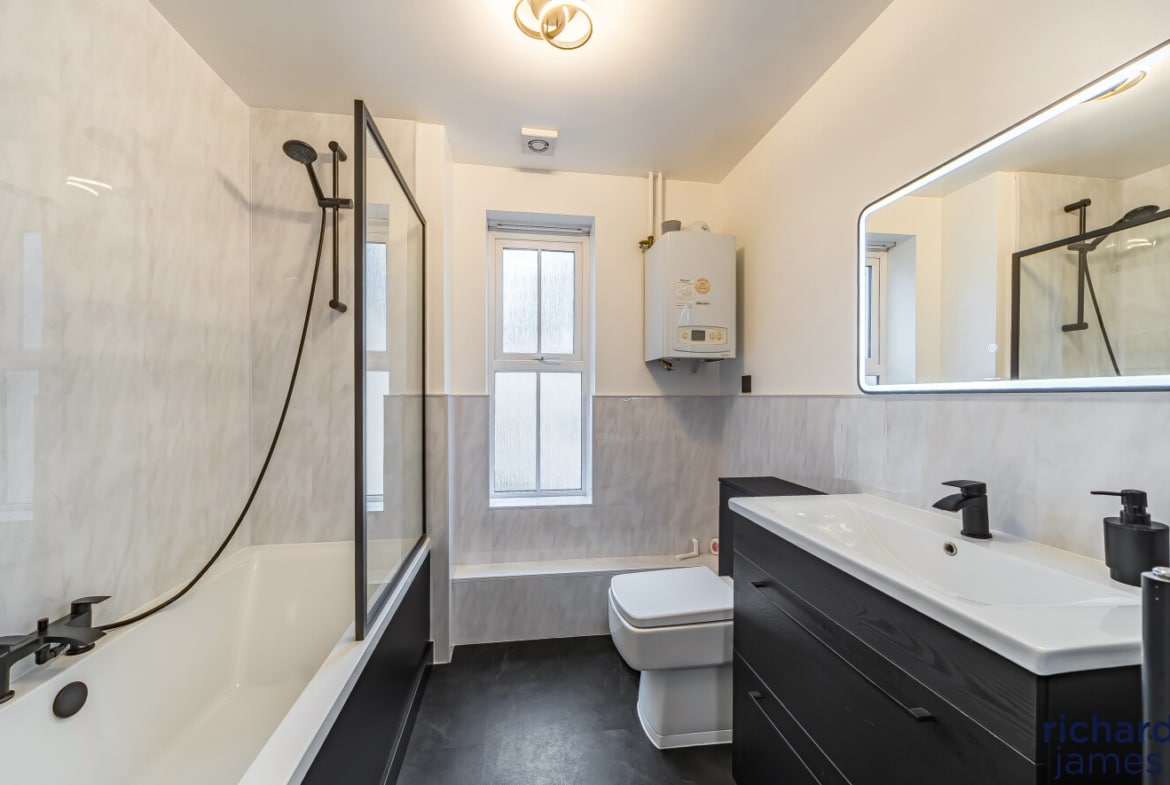 The main bathroom has been beautifully refreshed with a sleek, modern finish – your own little spa moment at home. Two handy storage cupboards and upgraded radiators add practicality and polish.