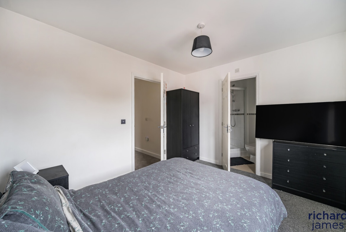 Step inside and you’ll find a bright open-plan kitchen, dining and living space – the perfect hub for morning coffees, midweek dinners or lazy Sunday film marathons. Both bedrooms are doubles, with the main enjoying its own ensuite, while the second offers versatility as a guest room, home office or dressing space.