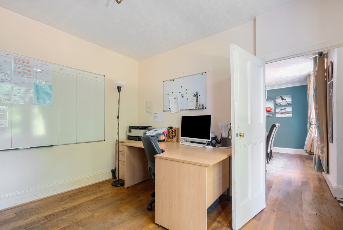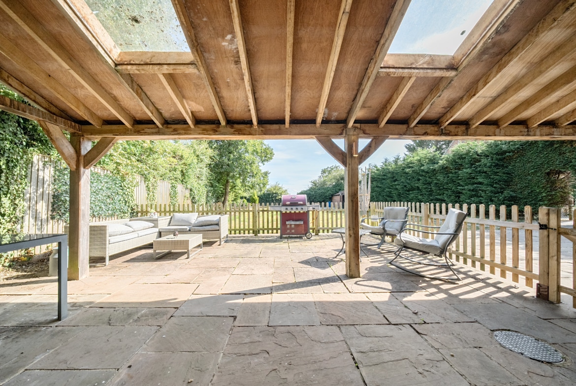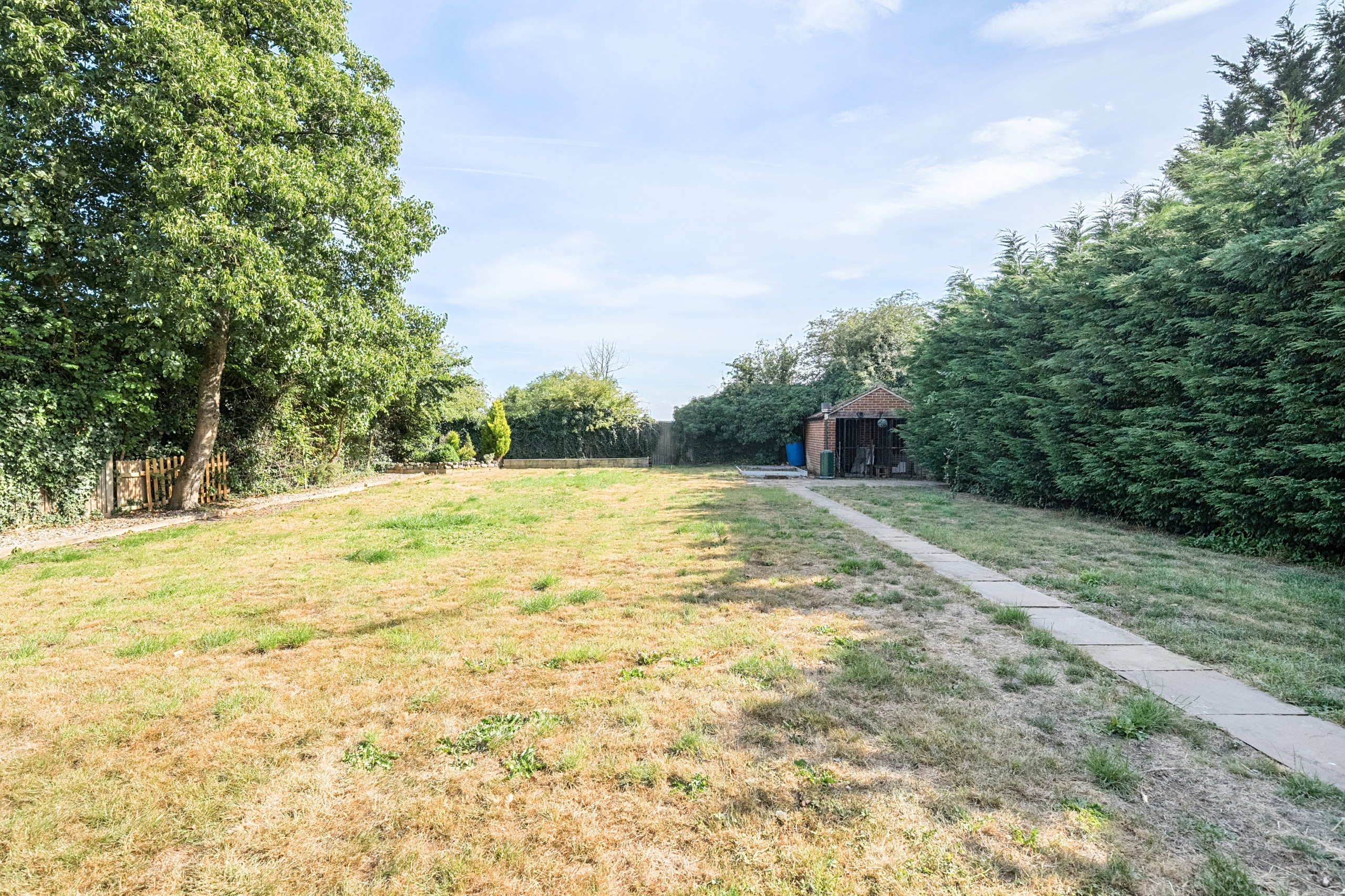 The property is approached via a substantial driveway offering ample off-road parking for numerous vehicles, along with a generous rear garden perfect for family enjoyment or further development potential (subject to planning permission).