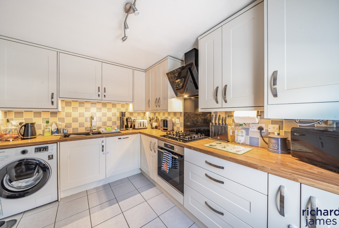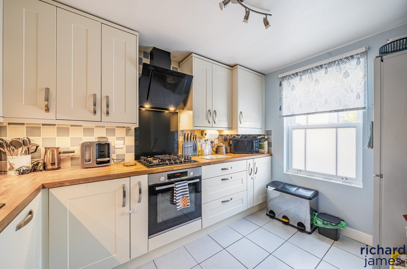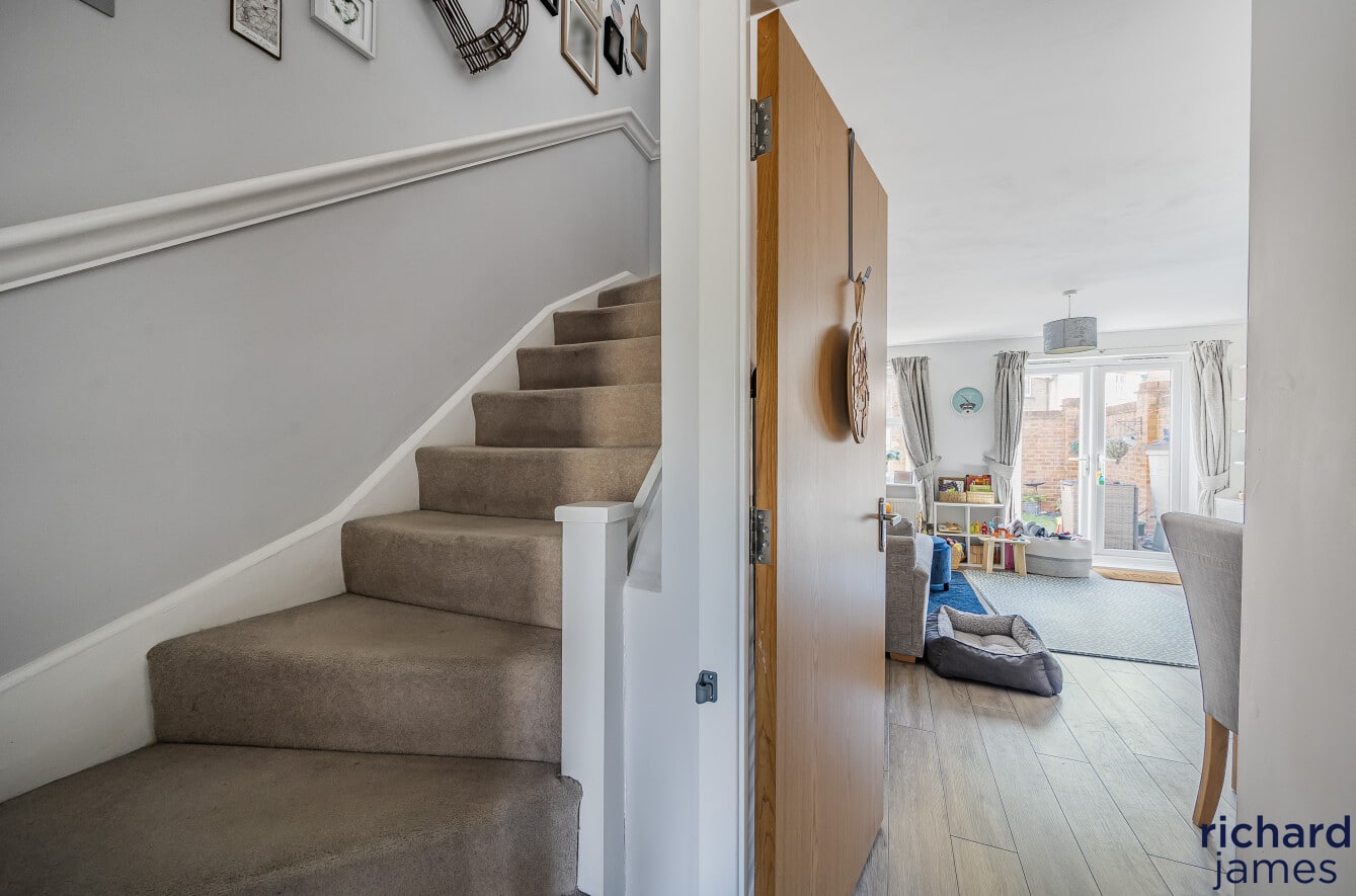 The property comprises; entrance hall, WC, kitchen to the front and a generous living room diner with storage cupboard at the back. Upstairs you’ll find a single bedroom, a double bedroom, the family bathroom and the master bedroom with shower room en suite. The property also benefits from a private rear garden, single garage and parking.