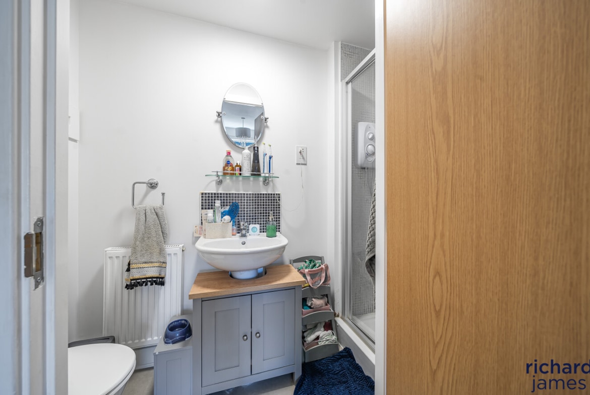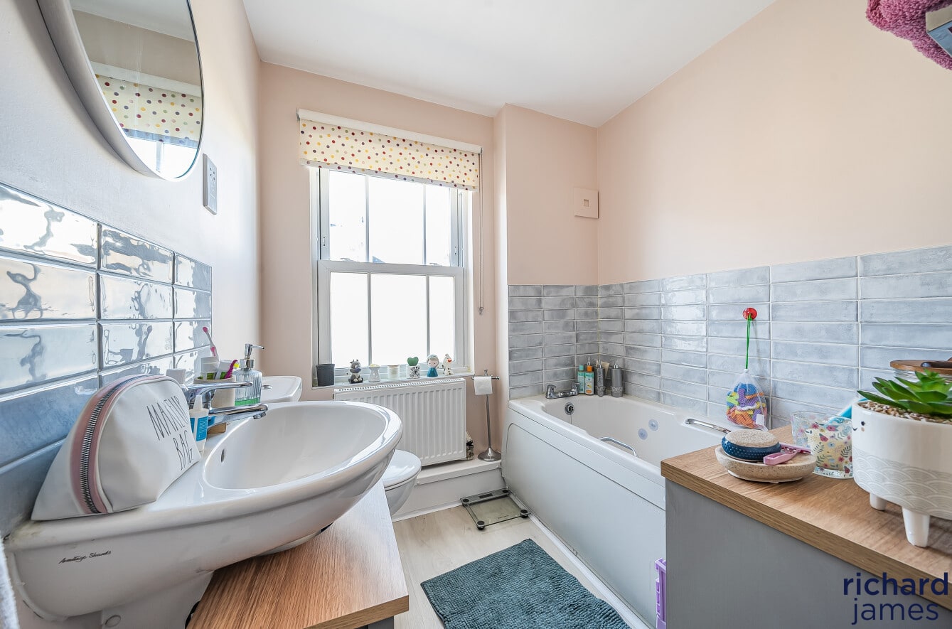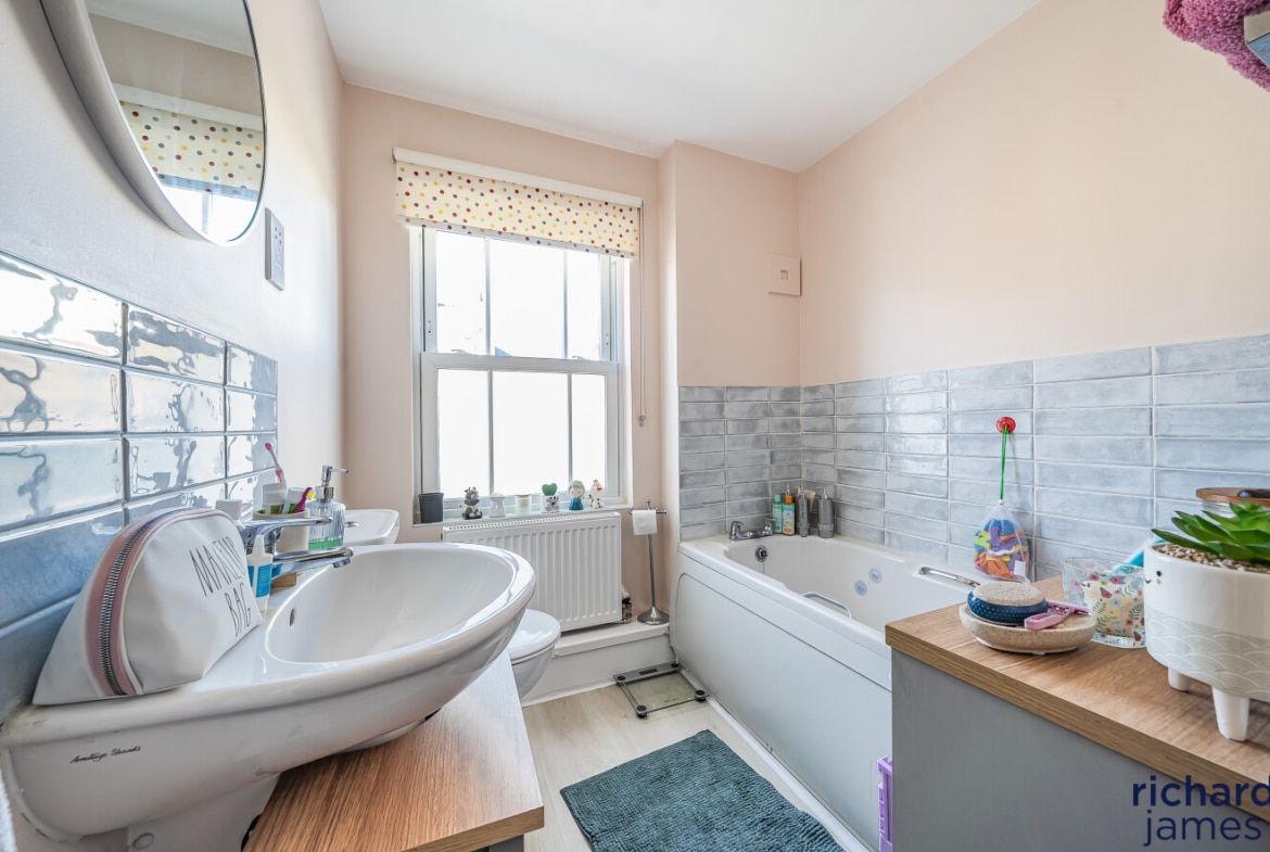 The property comprises; entrance hall, WC, kitchen to the front and a generous living room diner with storage cupboard at the back. Upstairs you’ll find a single bedroom, a double bedroom, the family bathroom and the master bedroom with shower room en suite. The property also benefits from a private rear garden, single garage and parking.
